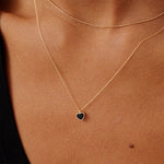 14K real solid gold heart-shaped pendant necklace featuring a minimalist black enamel design. A dainty and elegant charm perfect for everyday wear or as a heartfelt gift for special occasions.