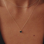 Embrace the timeless beauty and symbolism of love with this 14K Real Solid Gold Black Heart Necklace. This Golden Heart Necklace features a sleek and minimalist design, perfect for those who appreciate the elegance of simplicity. The Black Heart Pendant is nestled in luxurious 14K solid gold, creating a striking contrast that exudes both sophistication and charm.