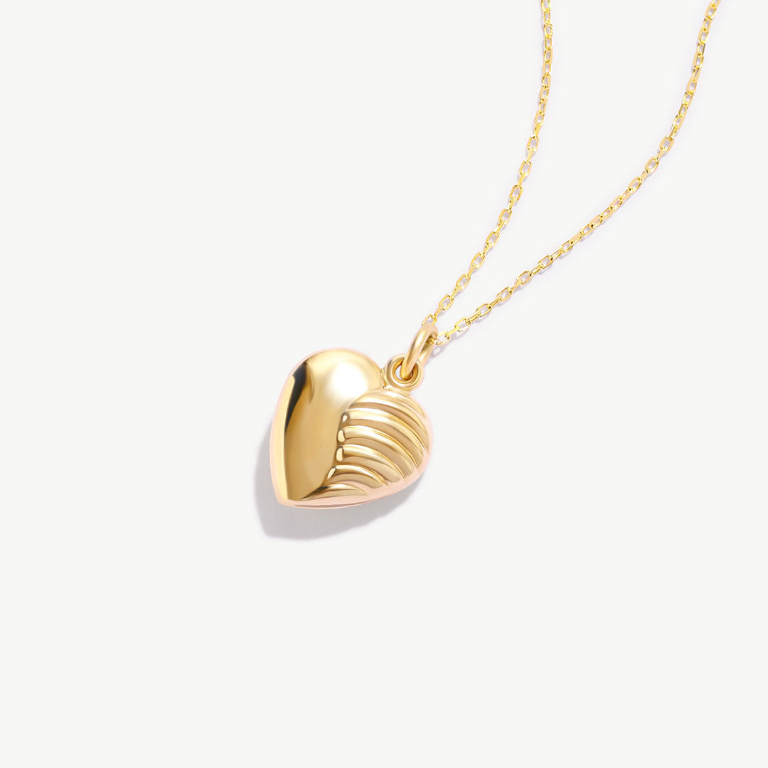 This solid gold heart pendant is more than jewelry — it’s a little reminder of love that lives close to the heart. Radiant, puffy, and feminine, it’s made to be loved forever.