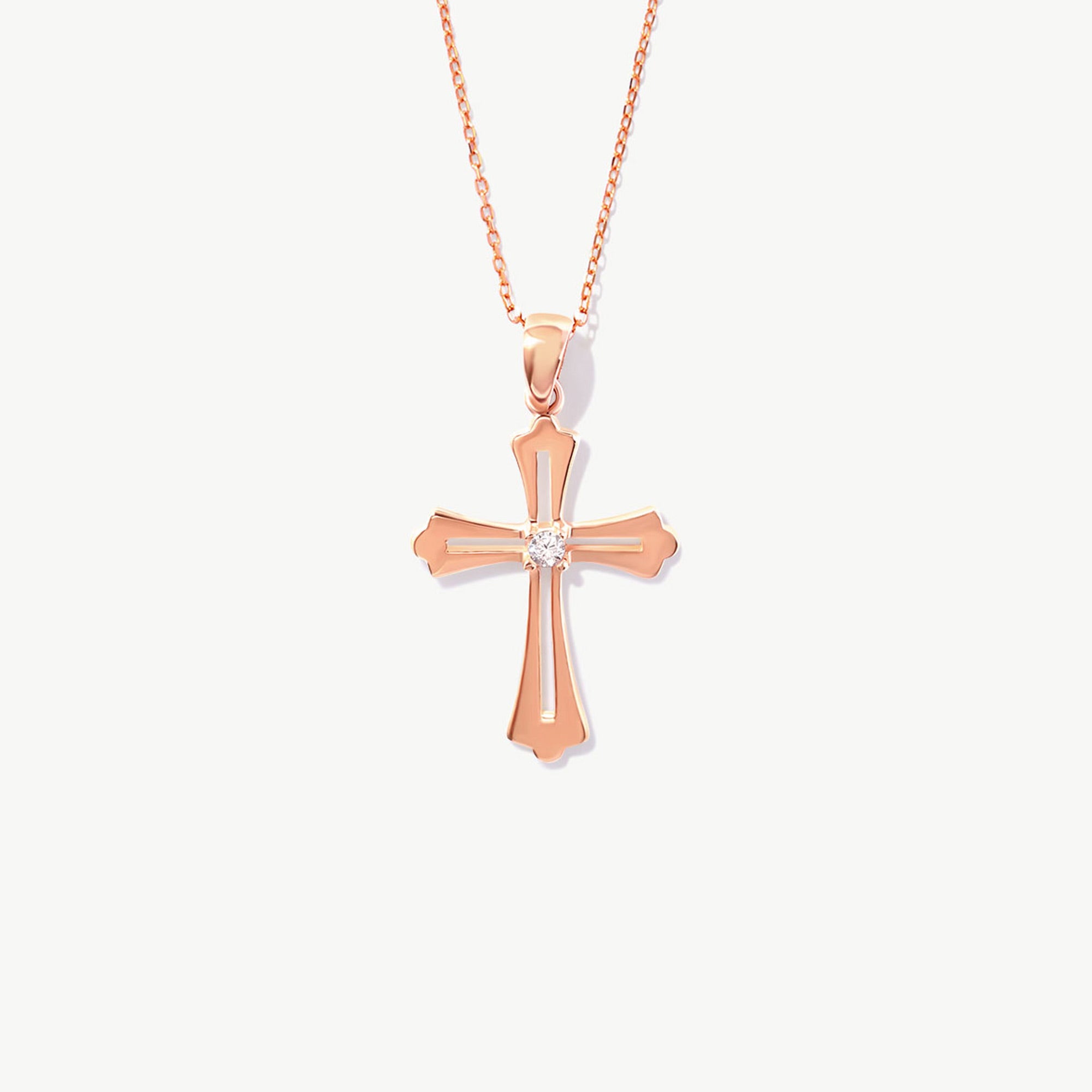 The 14K Real Solid Gold Catholic Cross Necklace is a graceful and powerful symbol of faith, enhanced with a brilliant April birthstone cubic zirconia placed at the heart of the cross. With its openwork design and soft curves, this pendant offers a modern yet deeply reverent interpretation of traditional religious jewelry.