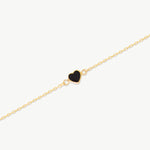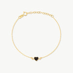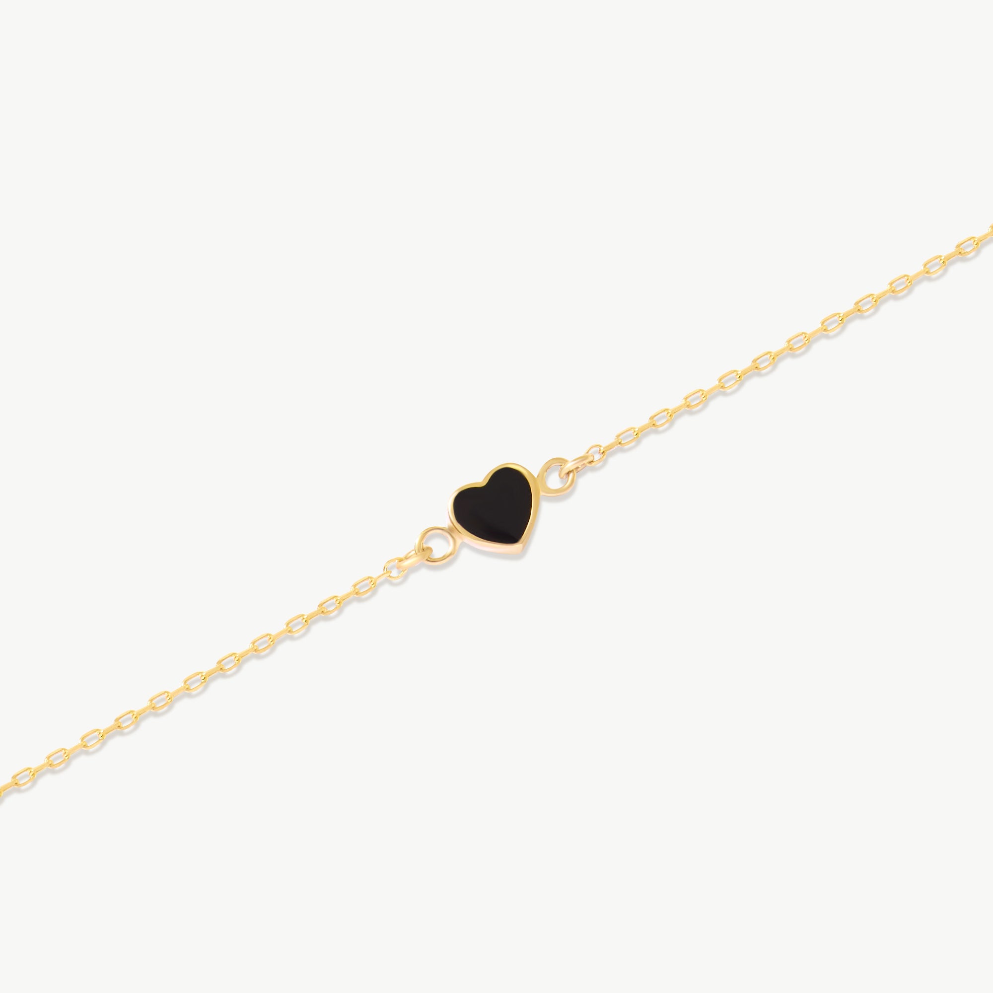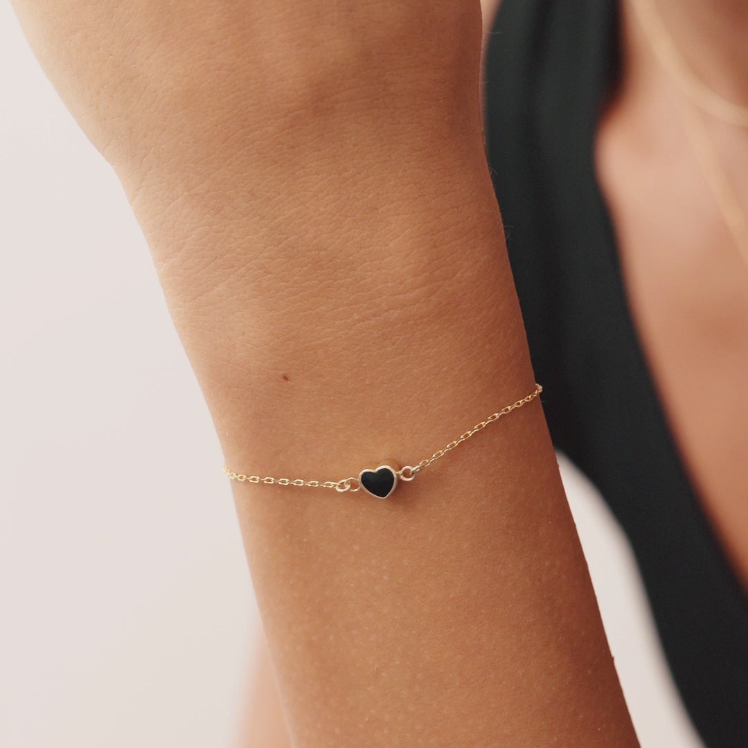 This bracelet is a charming and versatile piece with its black enamel heart, adding a touch of elegance to your everyday look. The minimalist design makes it perfect for layering or wearing on its own. Add a hint of love to your style with this graceful accessory.