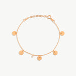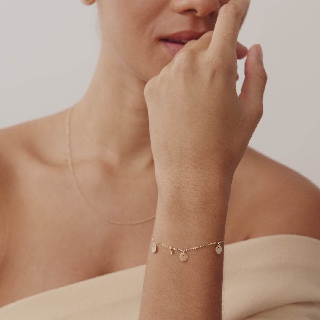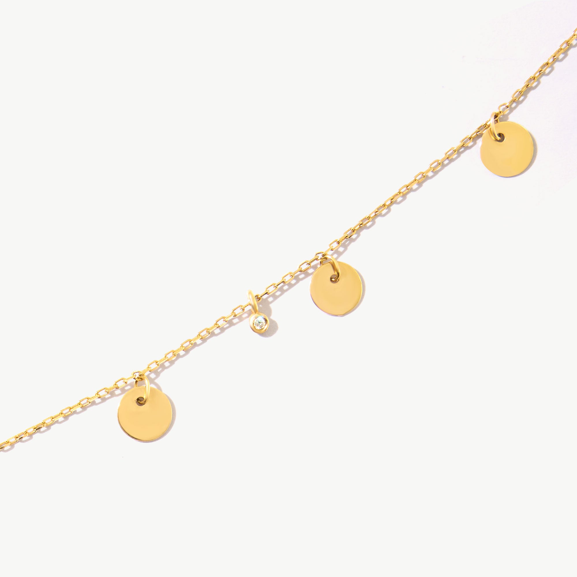 14K Solid Gold Coin Charm Station Bracelet with Diamond Accent
