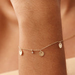 Introducing the 14K Real Solid Gold Station Delicate Diamond Bezel Satellite Beaded Dangle Coin Charm Layering Disc Chain Bracelet, a timeless piece of jewelry designed for those who appreciate subtle elegance. This bracelet combines the shimmer of gold with delicate coin charms and a single sparkling diamond accent, creating a sophisticated yet versatile accessory for any occasion.