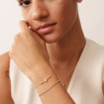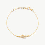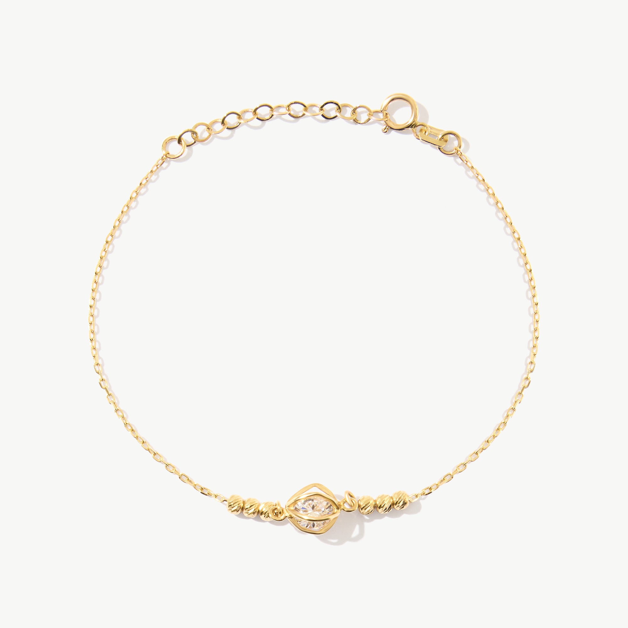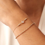 Embrace timeless elegance with the 14K Real Solid Gold Solitaire Cubic Zirconia Bezel Set Station Bracelet. This delicate bracelet features a stunning solitaire cubic zirconia, securely held in a bezel setting, complemented by dainty gold beads along a fine chain. Designed to be adjustable, it offers a perfect fit for any wrist, making it an exquisite choice for bridal jewelry, special occasions, or everyday luxury.