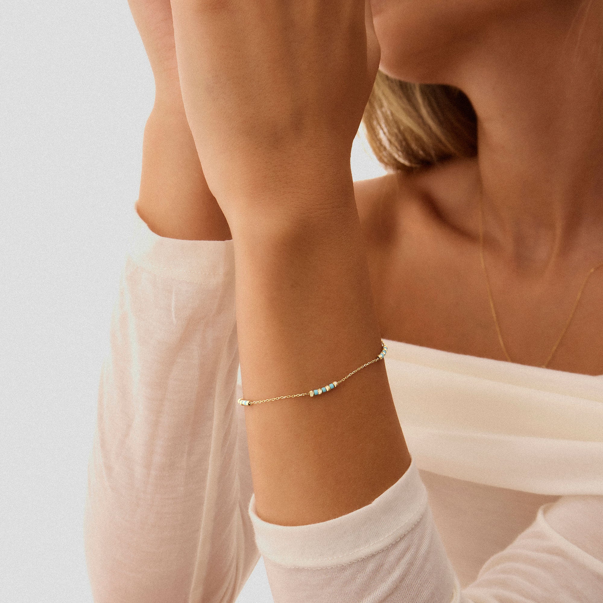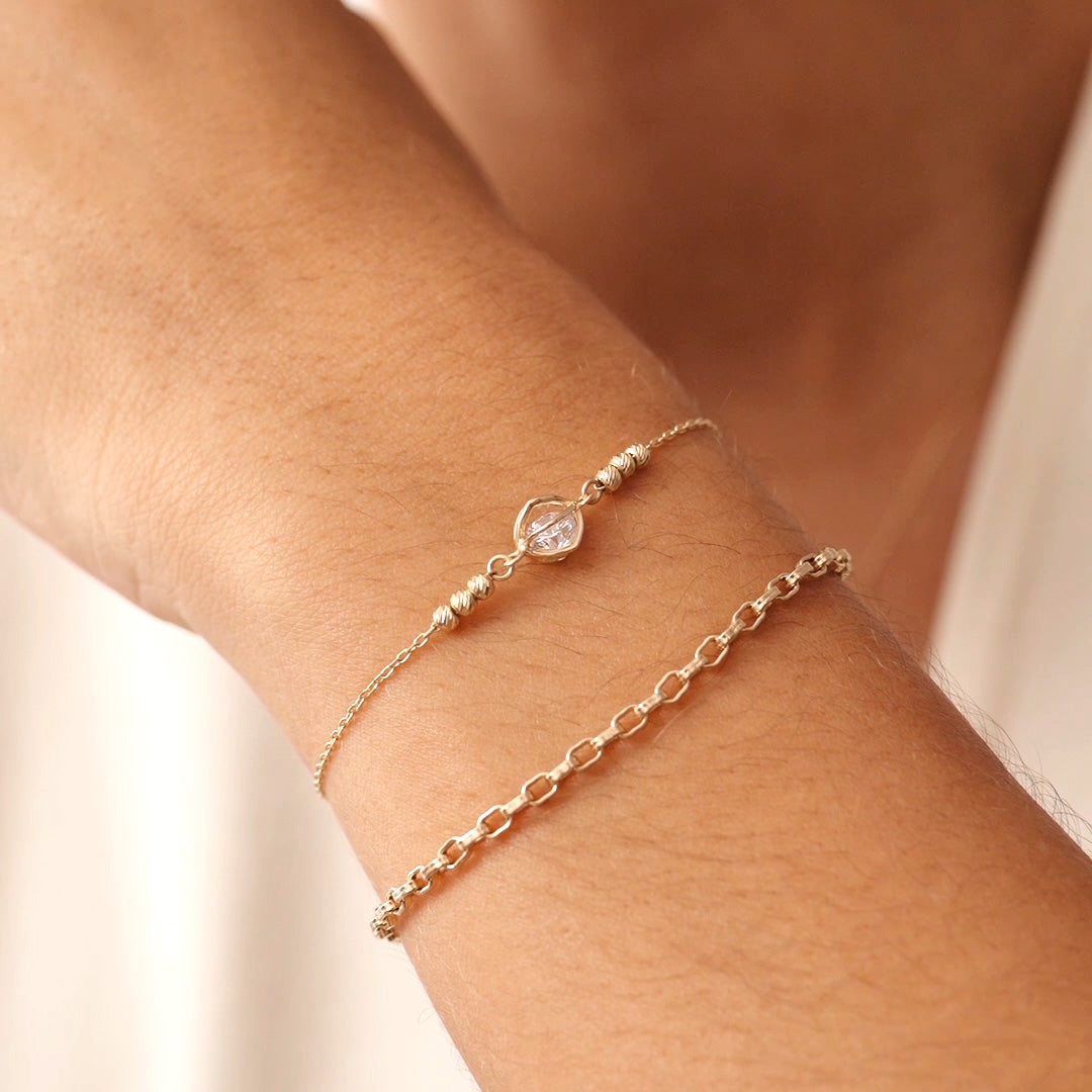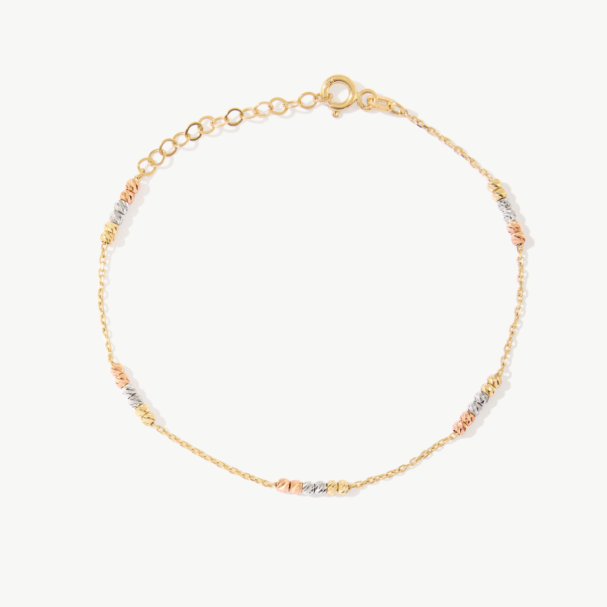 14K Solid Gold Coin Charm Station Bracelet with Diamond Accent