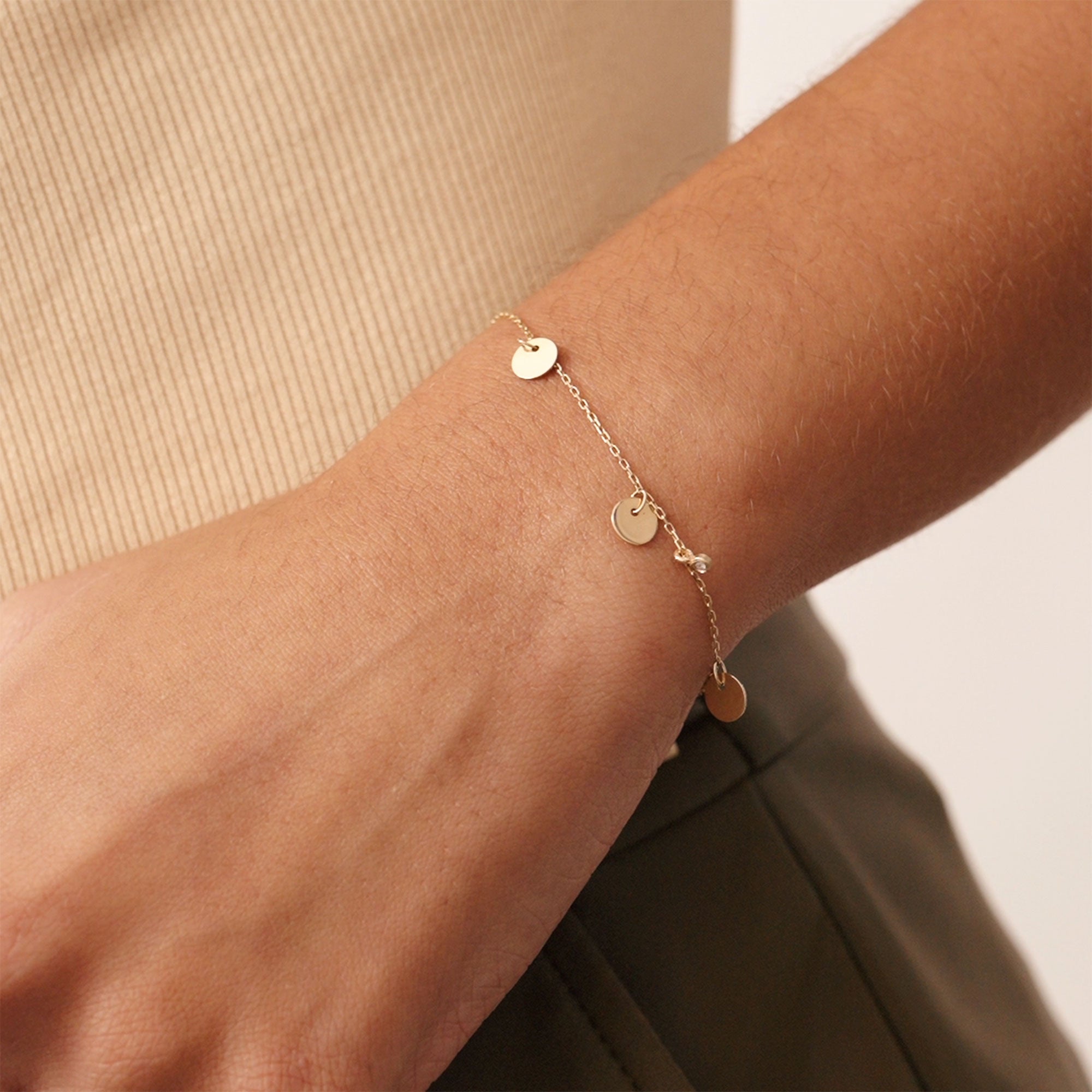 14K Solid Gold Coin Charm Station Bracelet with Diamond