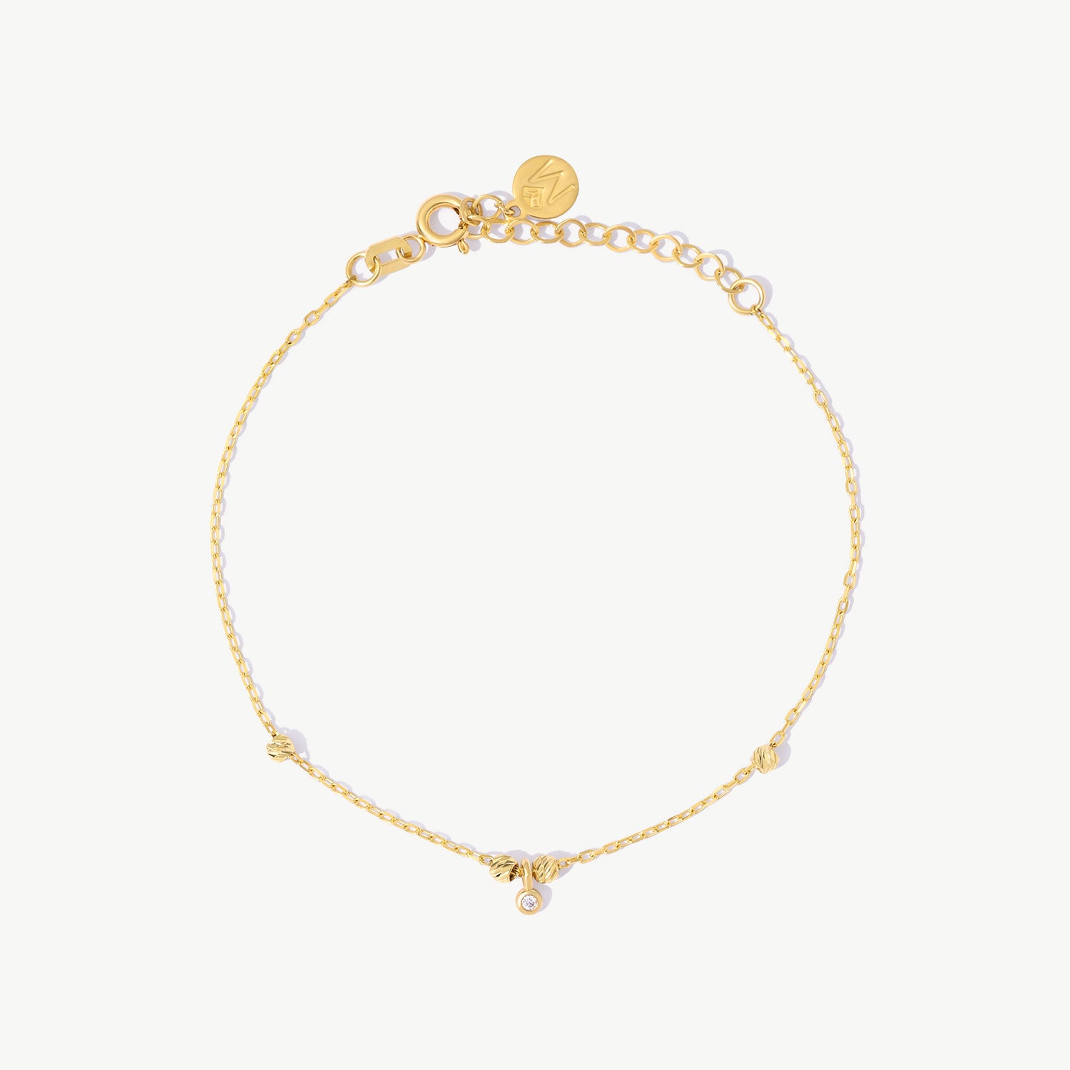 14K Solid Gold Ball Beaded Station Bracelet with Diamond
