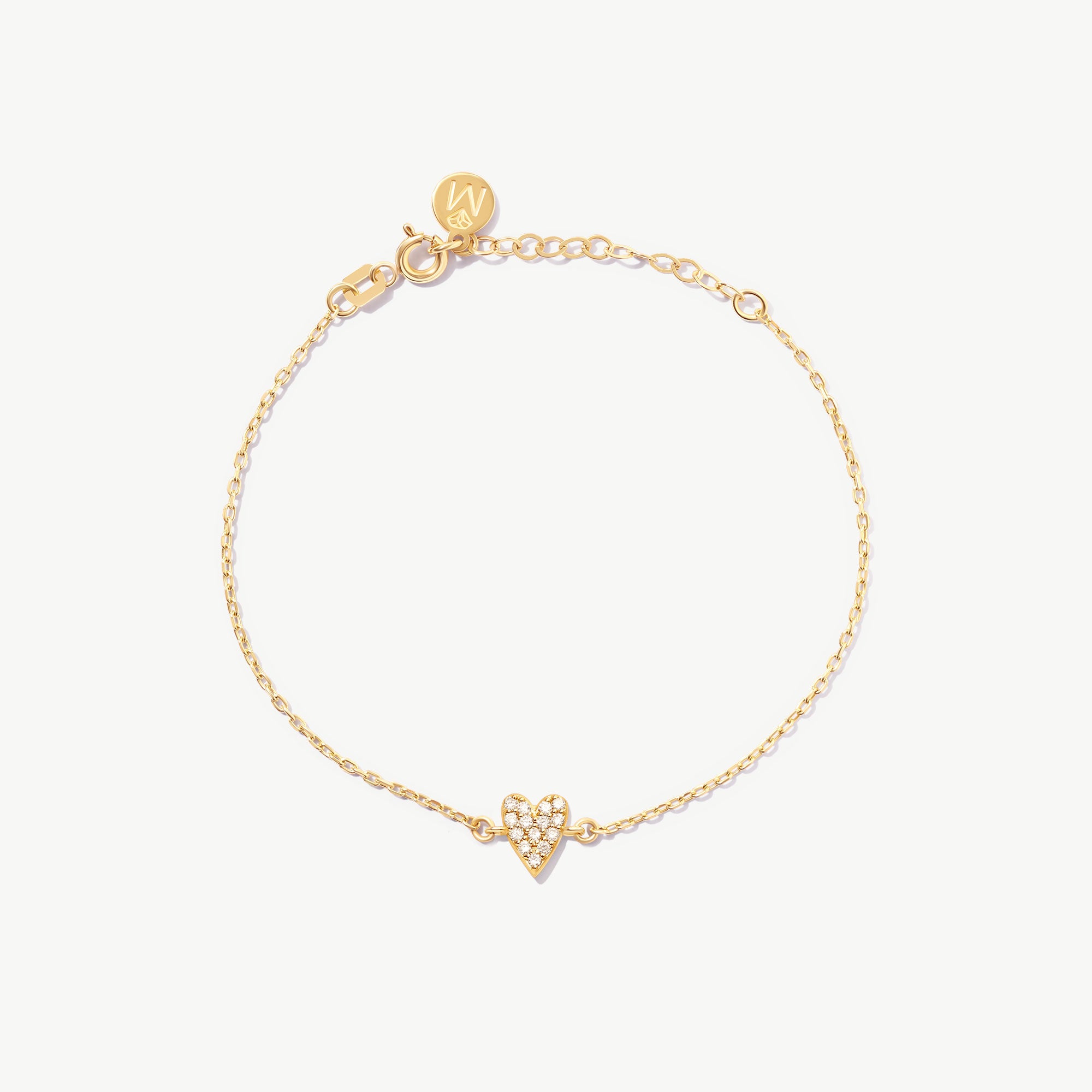 14K Solid Gold Diamond Heart Bracelet, Pave Setting Dainty Love Bracelet,