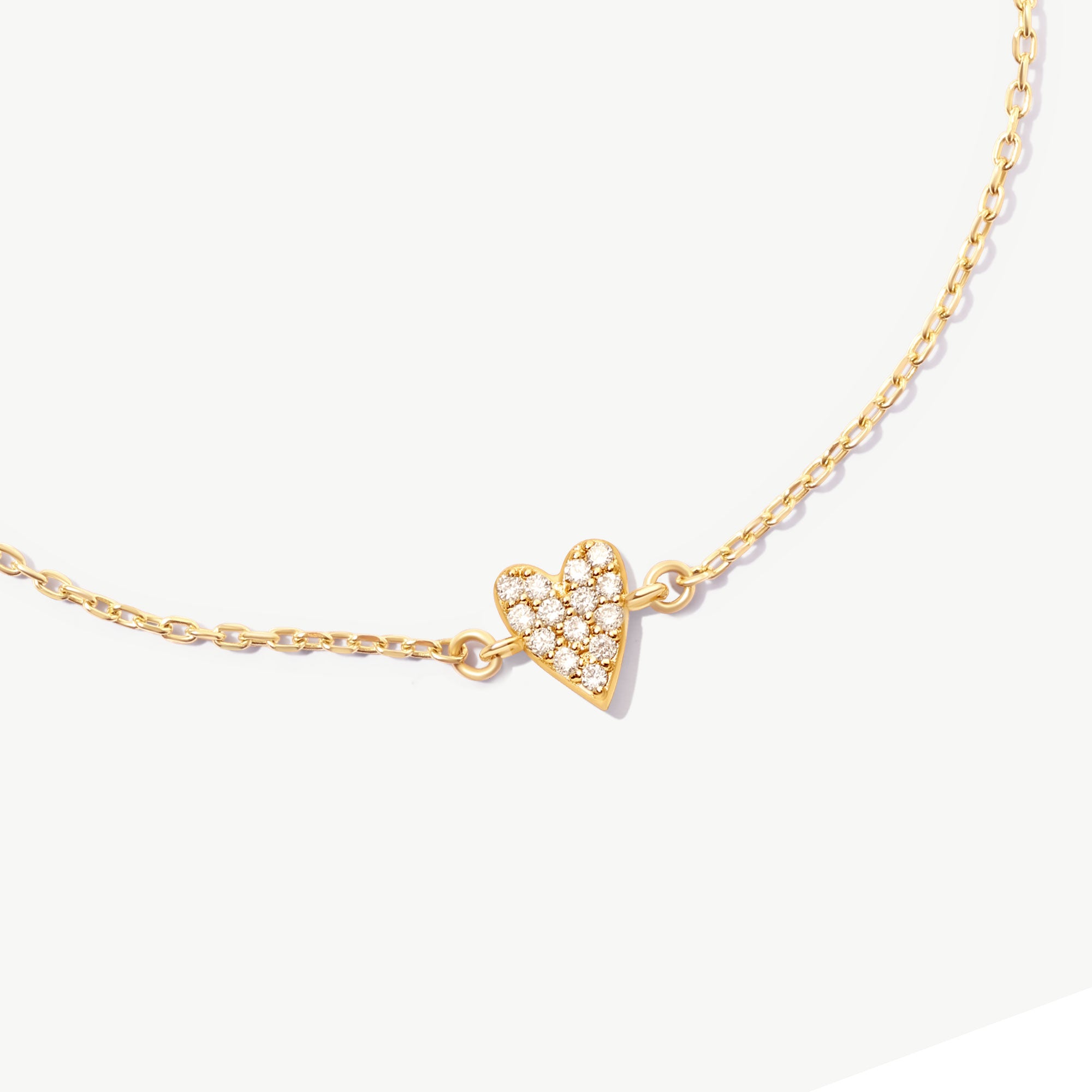 14K Solid Gold Diamond Heart Bracelet, Pave Setting Dainty Love Bracelet,