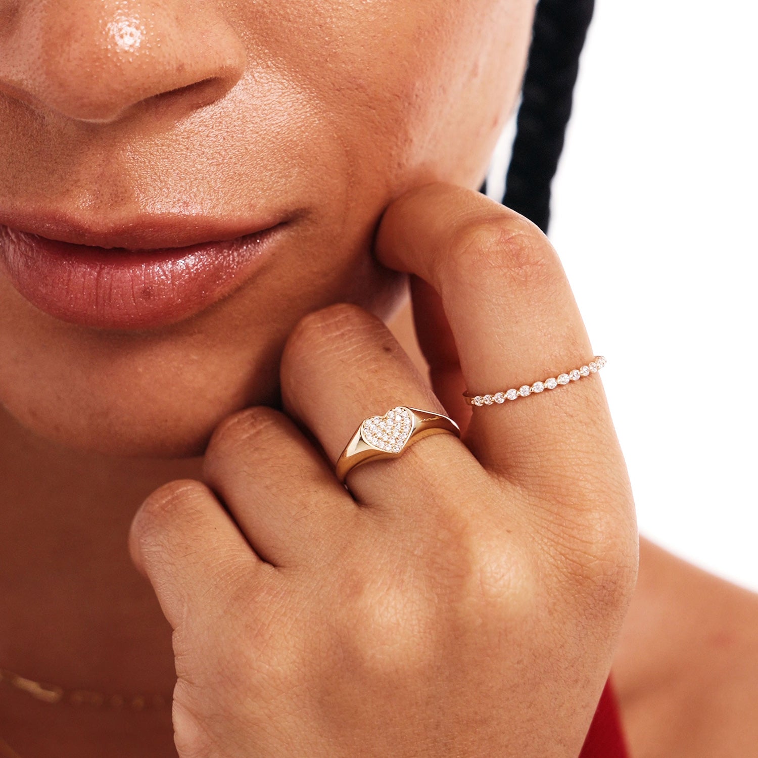 14K Solid Gold Diamond Heart Ring: Pave Setting Promise Ring
