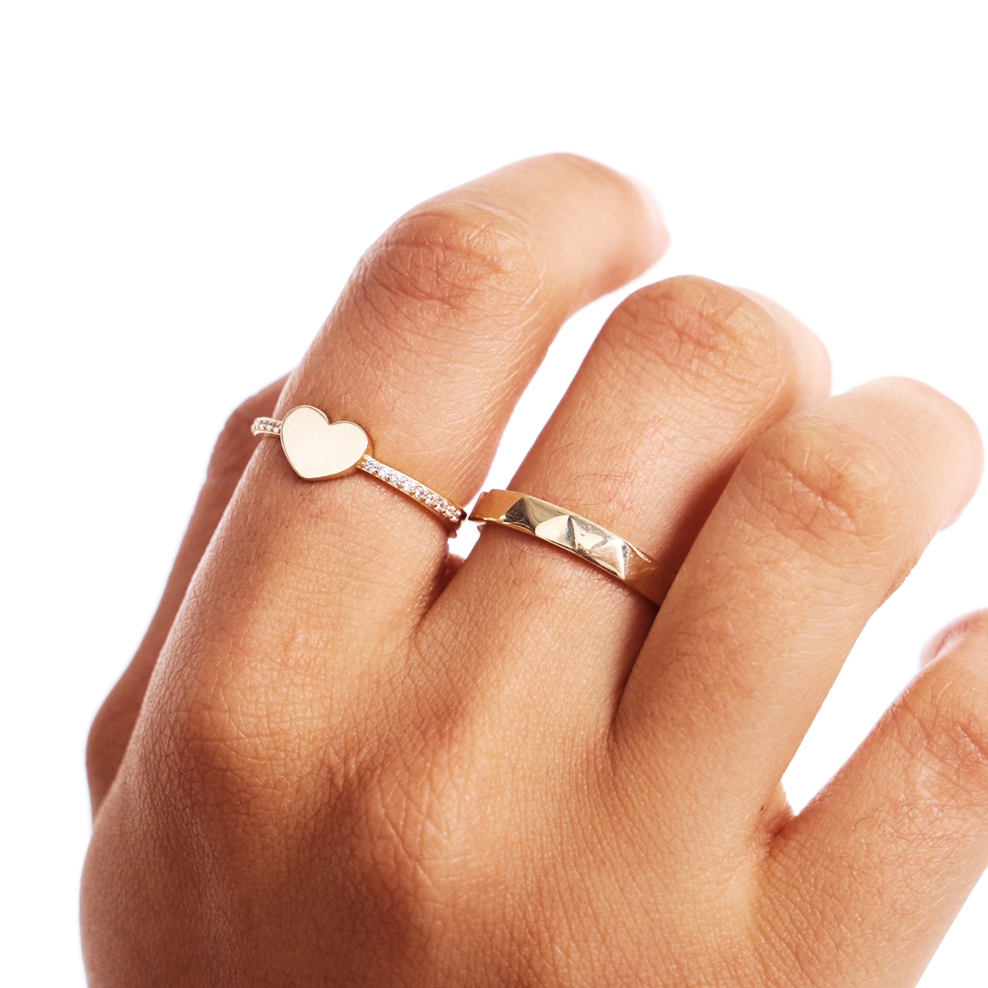 14K Solid Gold Diamond Heart Ring: Minimalist Promise Ring