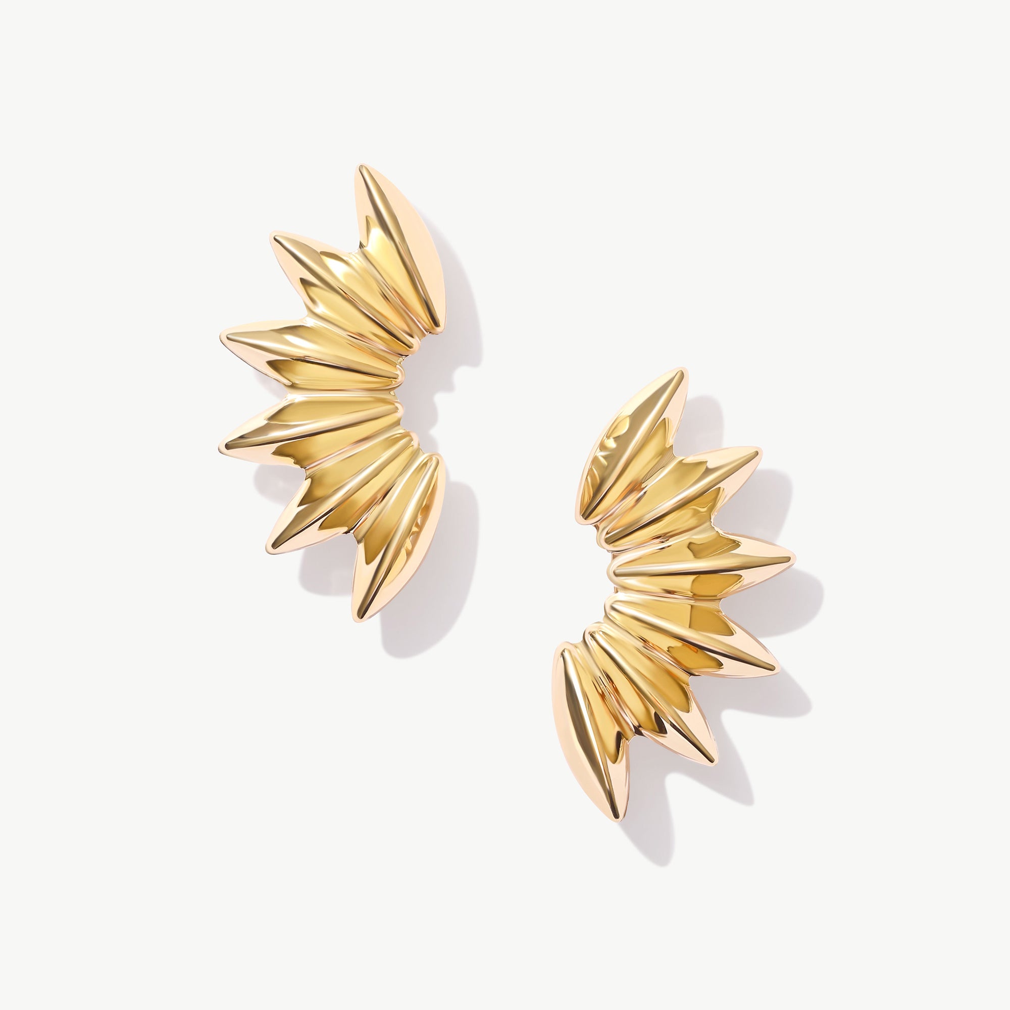 14K Solid Gold Sea Shell Studs, Statement Earrings