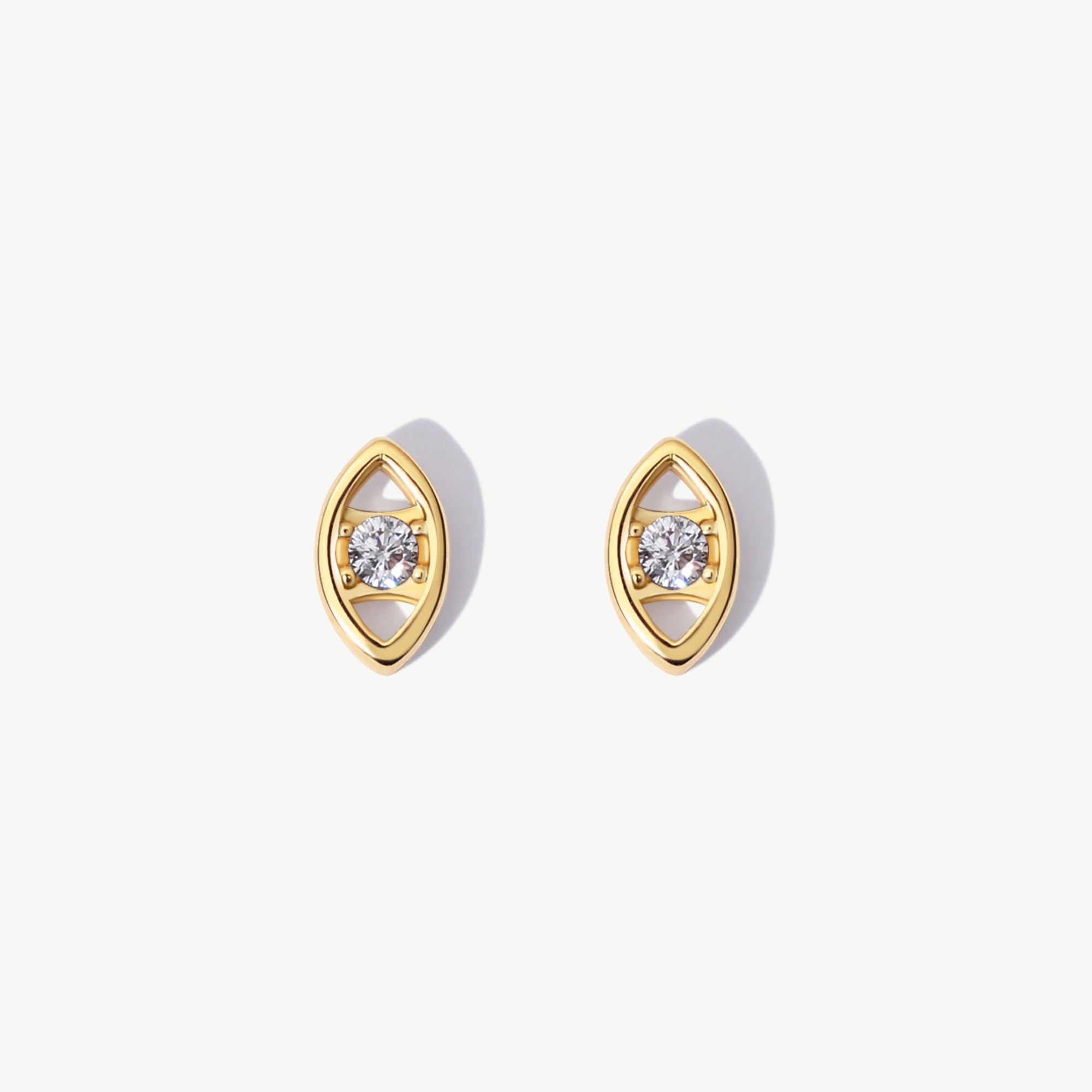 14K Solid Gold Evil Eye Studs - Protective Earrings