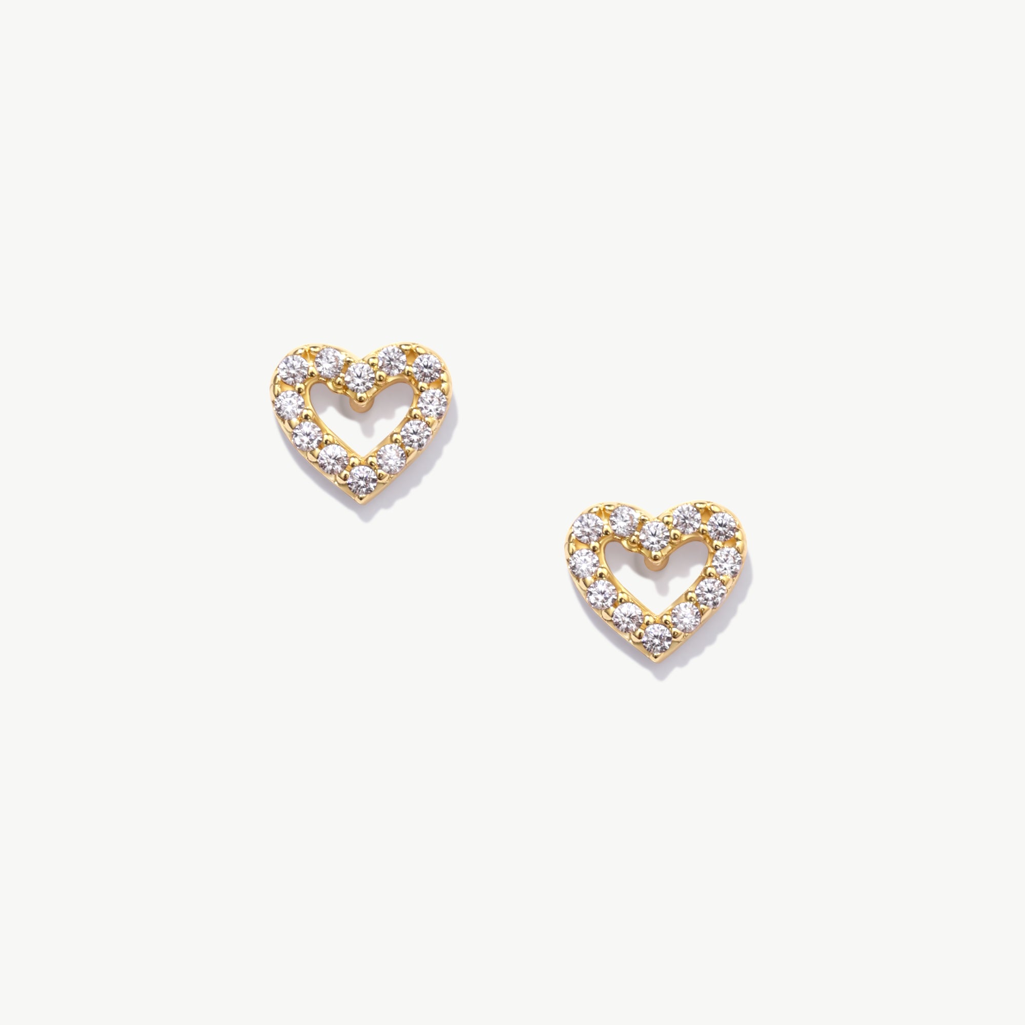 14K Solid Gold Diamond Heart Studs– Everyday Love Earrings