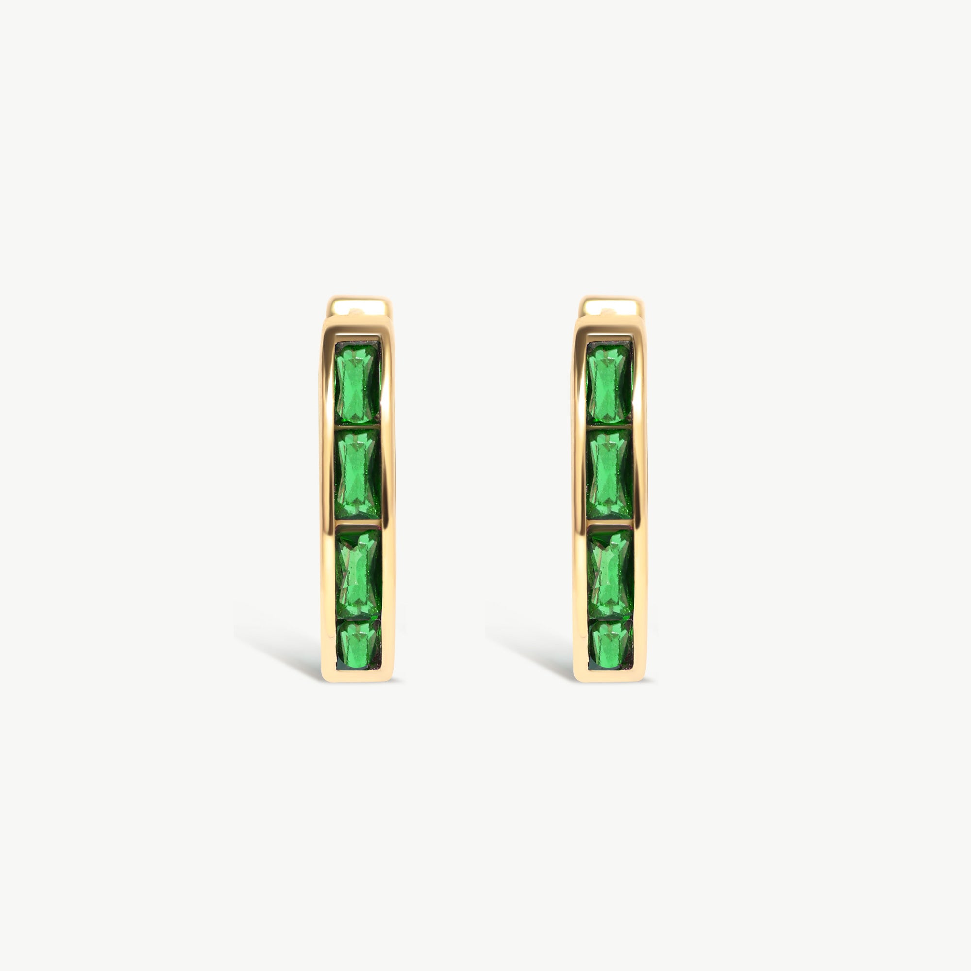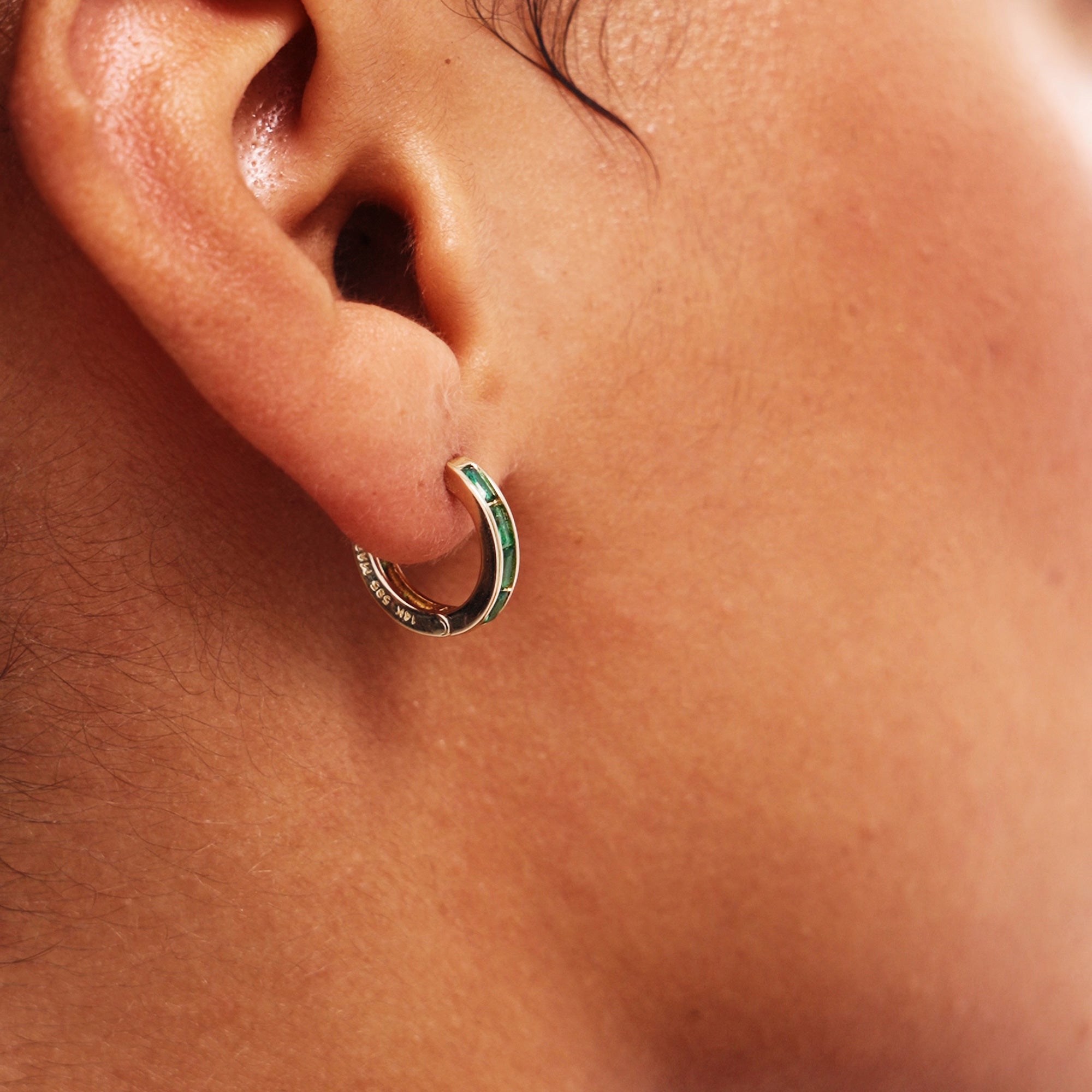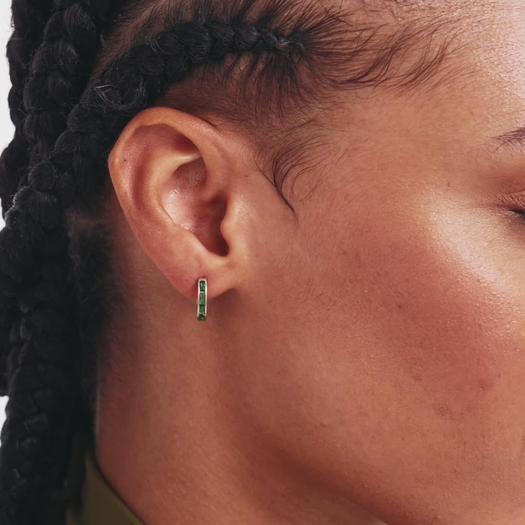 14K Solid Gold Emerald Hoops