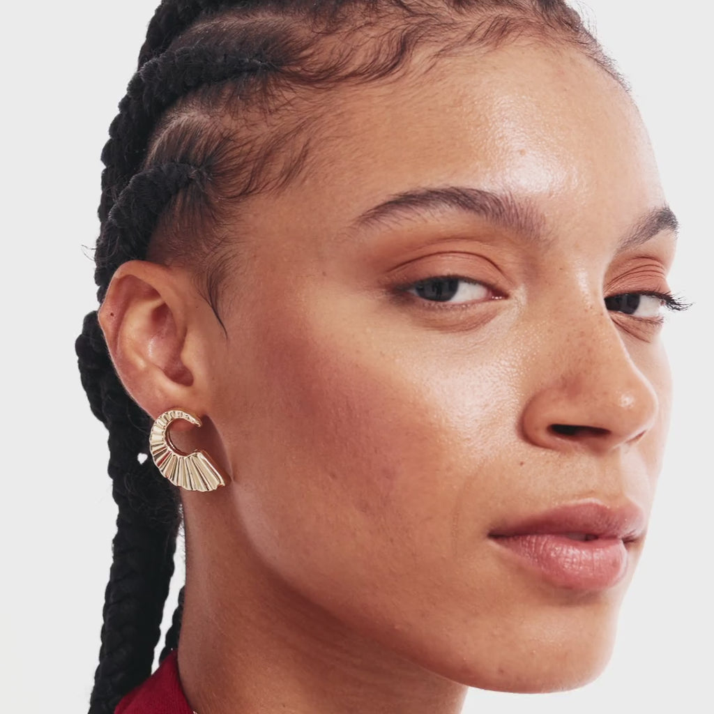 14K Real Solid Gold Seashell Statement Earrings