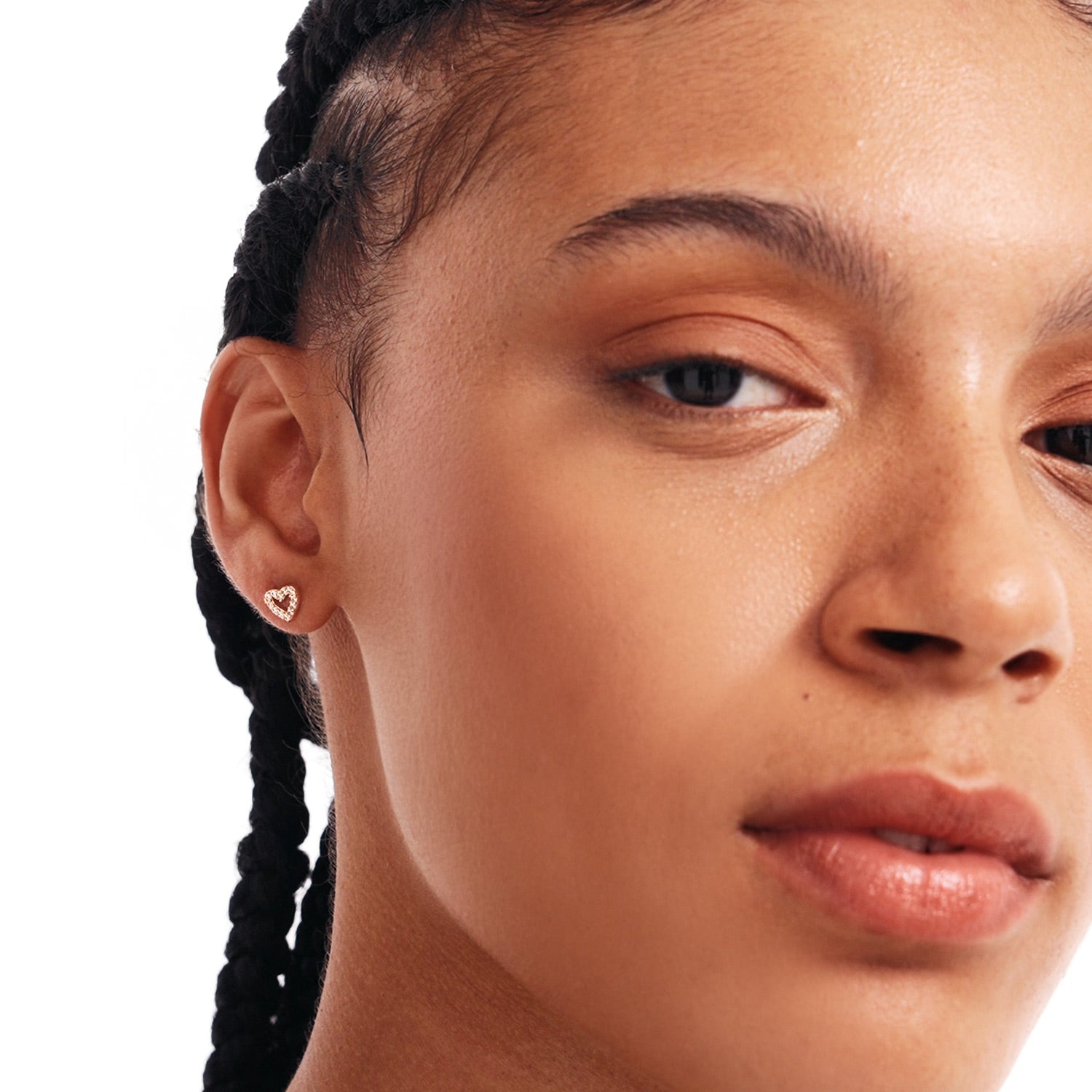 14K Solid Gold Diamond Heart Studs– Everyday Love Earrings