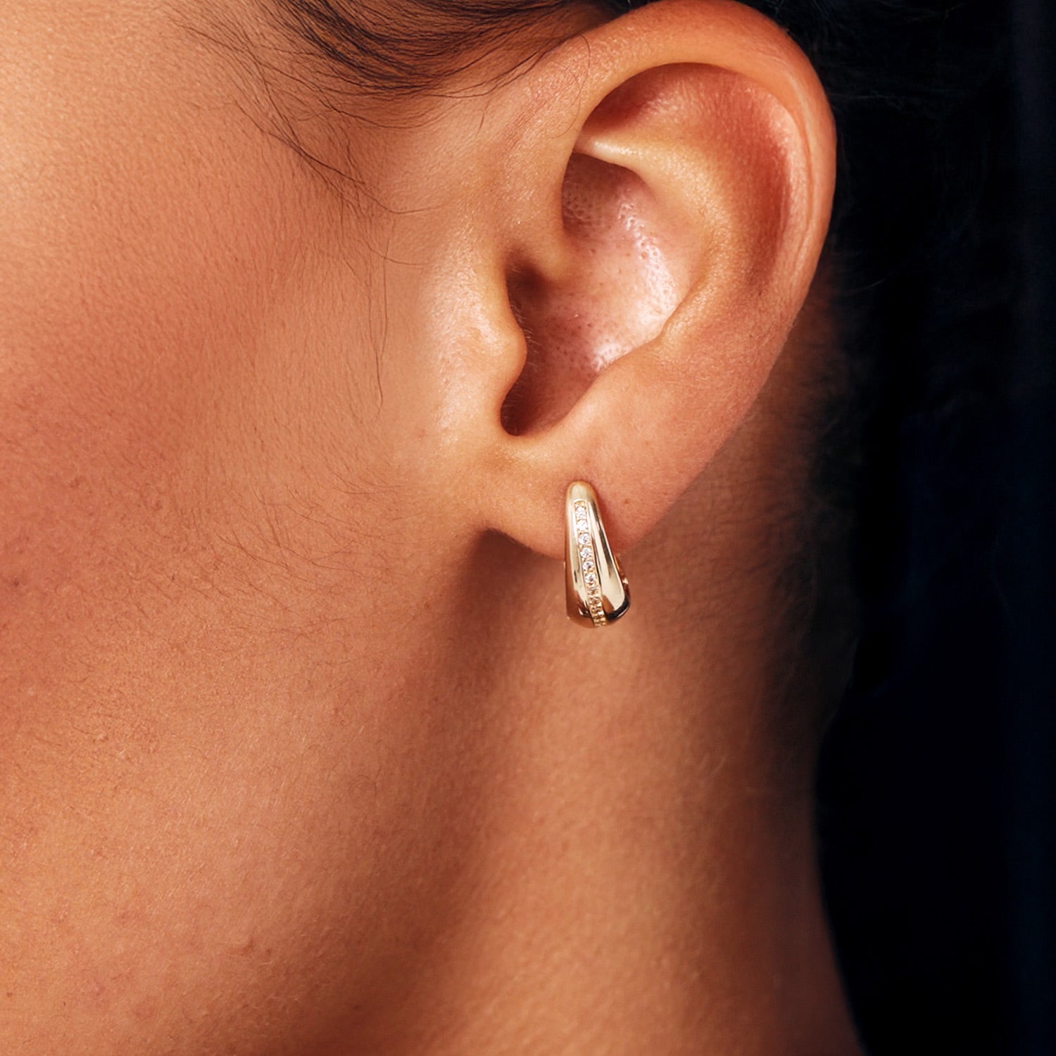 Their bold yet sophisticated design strikes the perfect balance between everyday elegance and special occasion glamour. The thick, rounded silhouette adds a contemporary touch, while the diamonds bring timeless luxury, making these earrings suitable for both minimalist and statement looks.