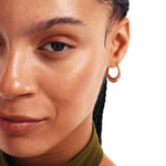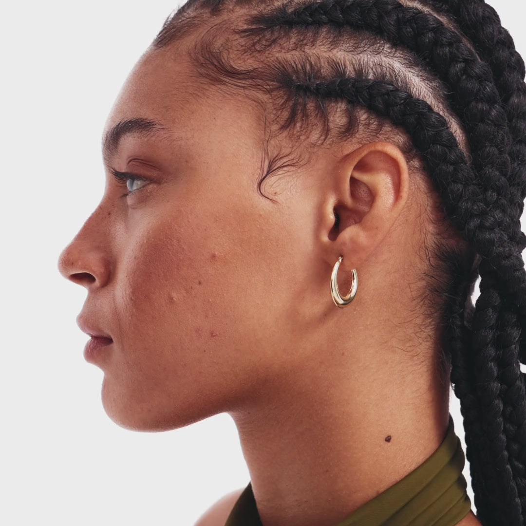 Crafted entirely from solid 14K gold, these hoops offer structure without heaviness. Their moon-inspired curve adds dimension and depth, making them perfect for elevating everyday outfits or completing a statement look.