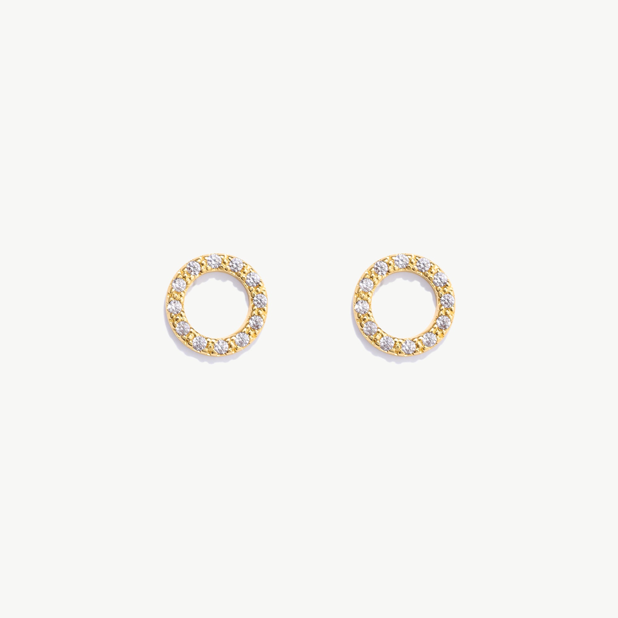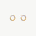 14K Solid Gold Diamond Circle Studs, Delicate Small Earrings
