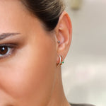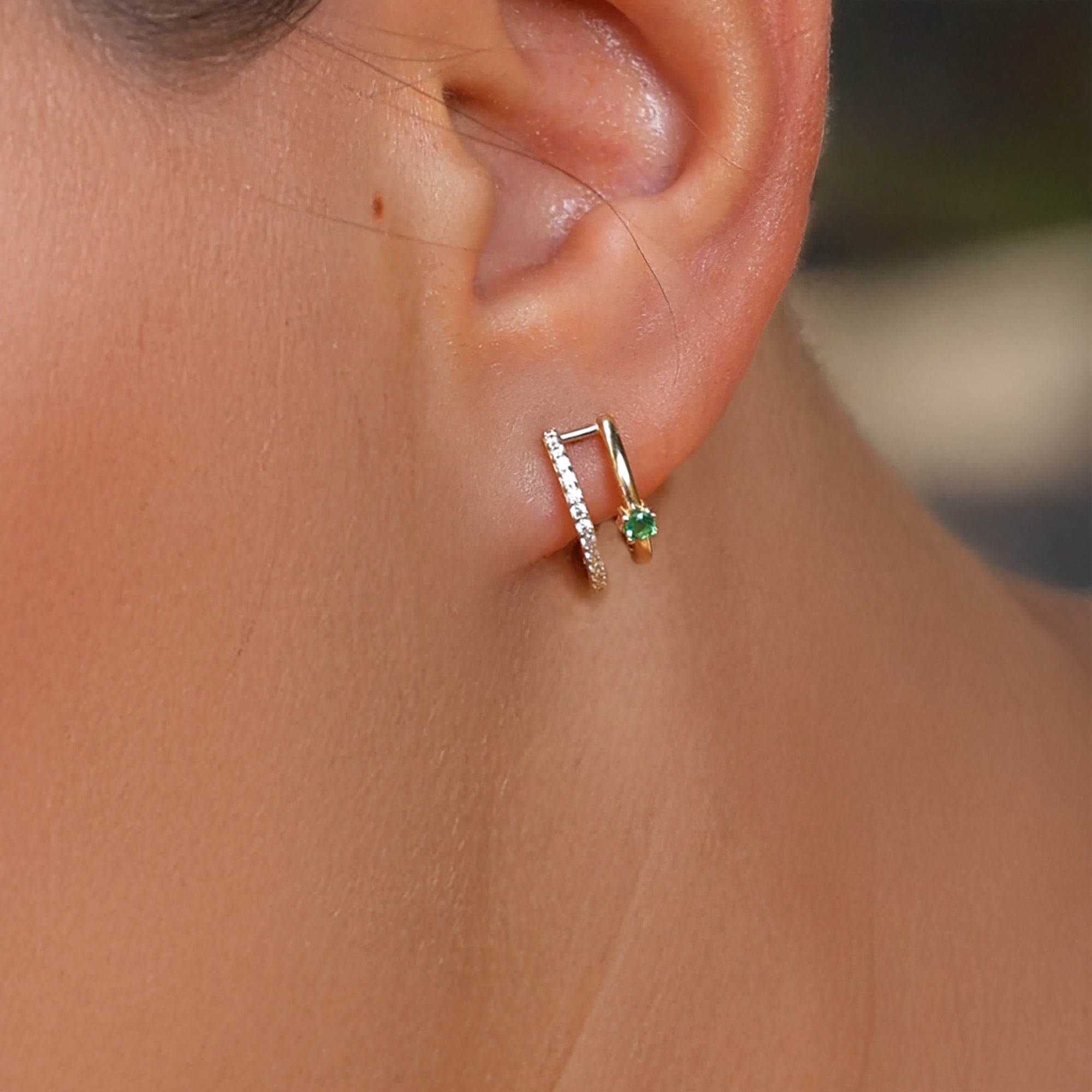 Turn heads with these captivating 14K Real Solid Gold Diamond Double Hoop Earrings, designed to combine elegance, modern style, and luxury in one stunning piece. This unique twin-hoop design features two parallel loops — one adorned with a brilliant row of real diamonds, and the other showcasing a single emerald-cut cubic zirconia for a bold yet refined look.