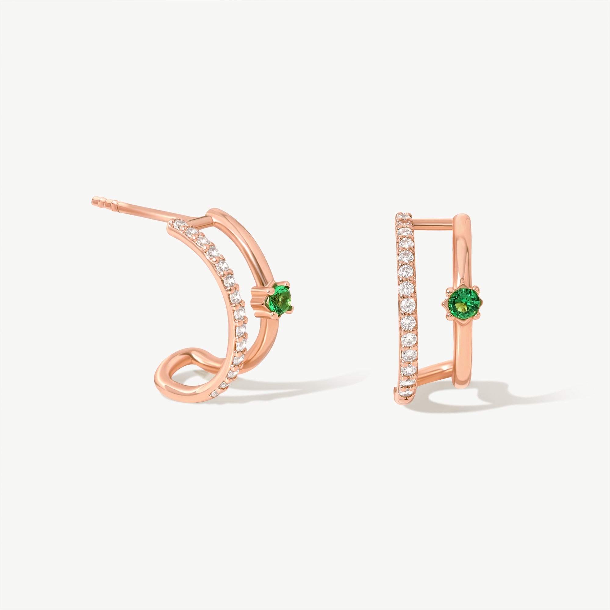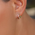 Their sophisticated and contemporary design makes them versatile enough to complement both casual and formal outfits. The combination of sparkling diamonds and a striking emerald-green accent stone creates a truly eye-catching contrast that adds a touch of luxury to any look.
