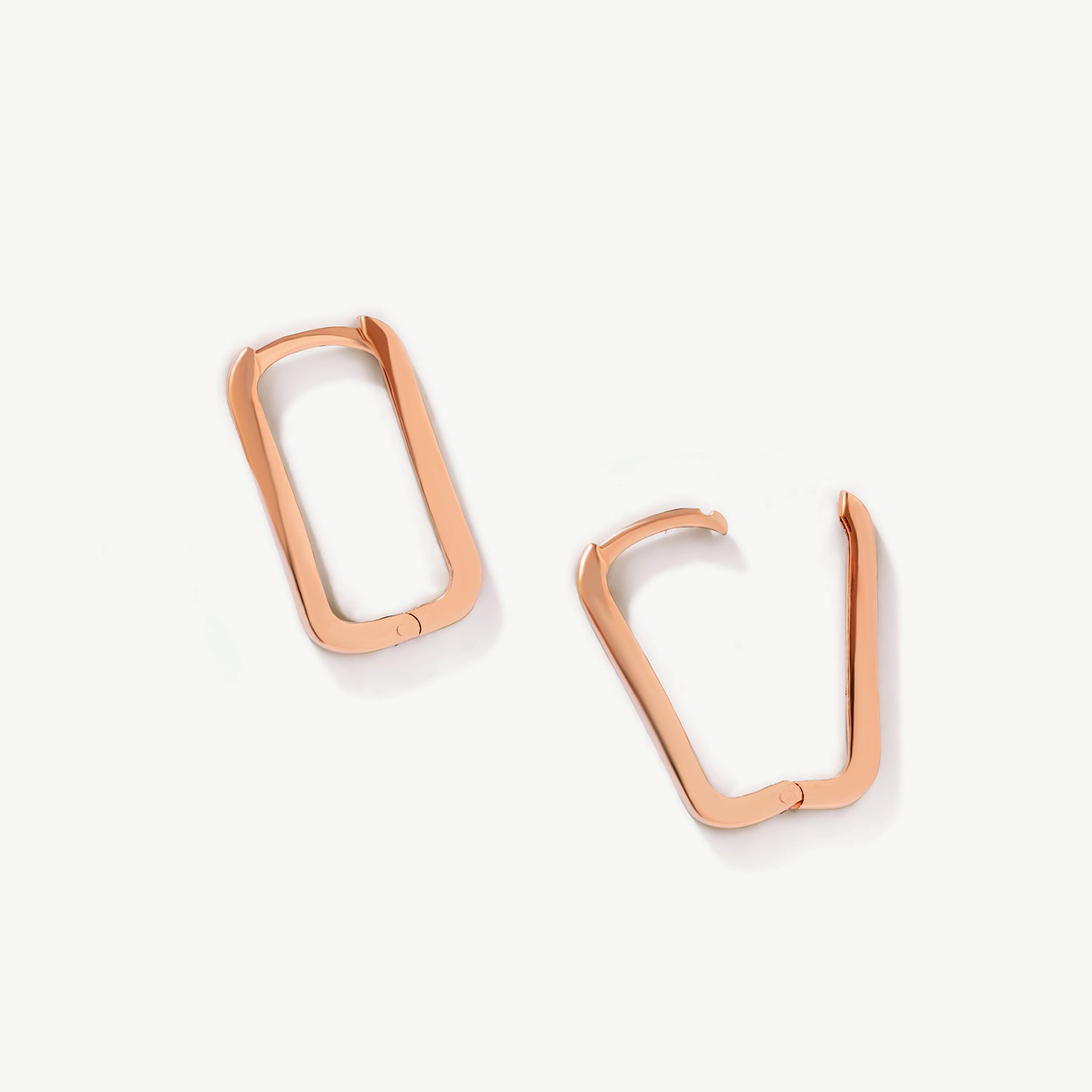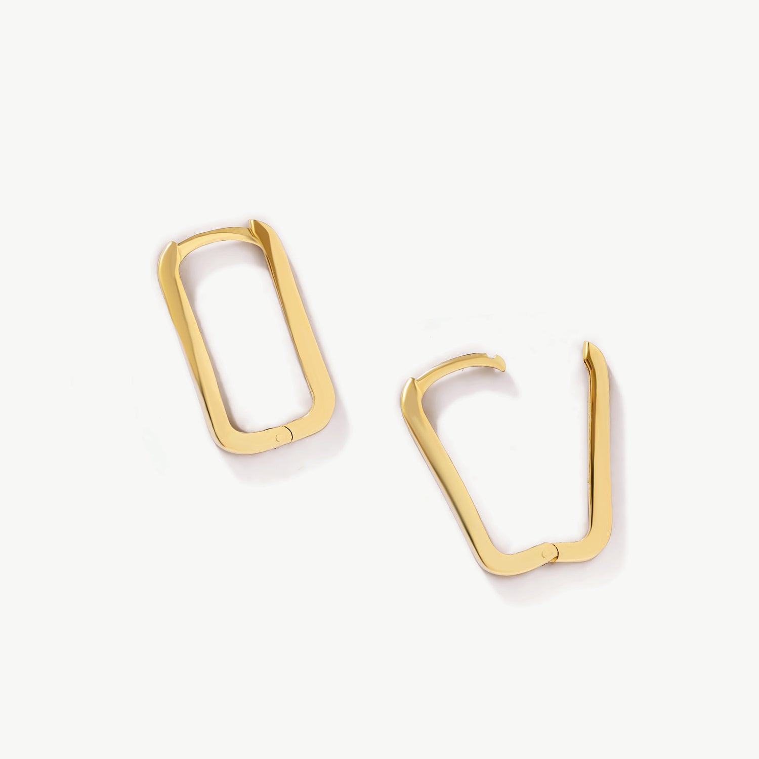 Add a touch of sophistication to your jewelry collection with these rectangular gold hoop earrings. Their minimalist design makes them versatile enough for layering with other pieces or wearing solo as a statement accessory. Whether you're dressing up or down, these earrings are the perfect way to elevate your look with subtle elegance.