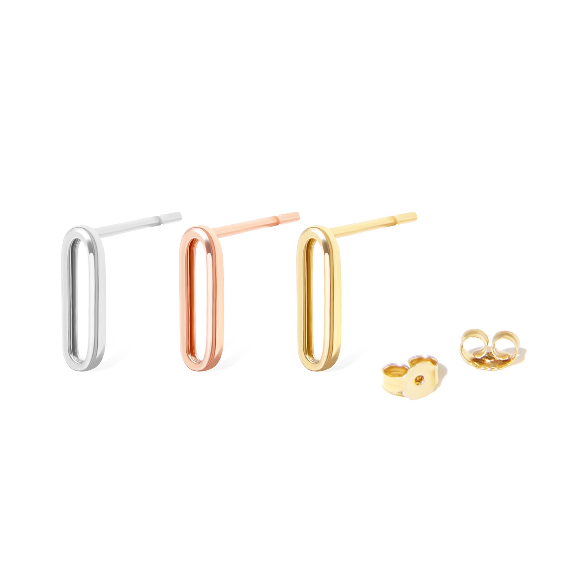 14K Solid Gold Paperclip Dangling Stud Earrings