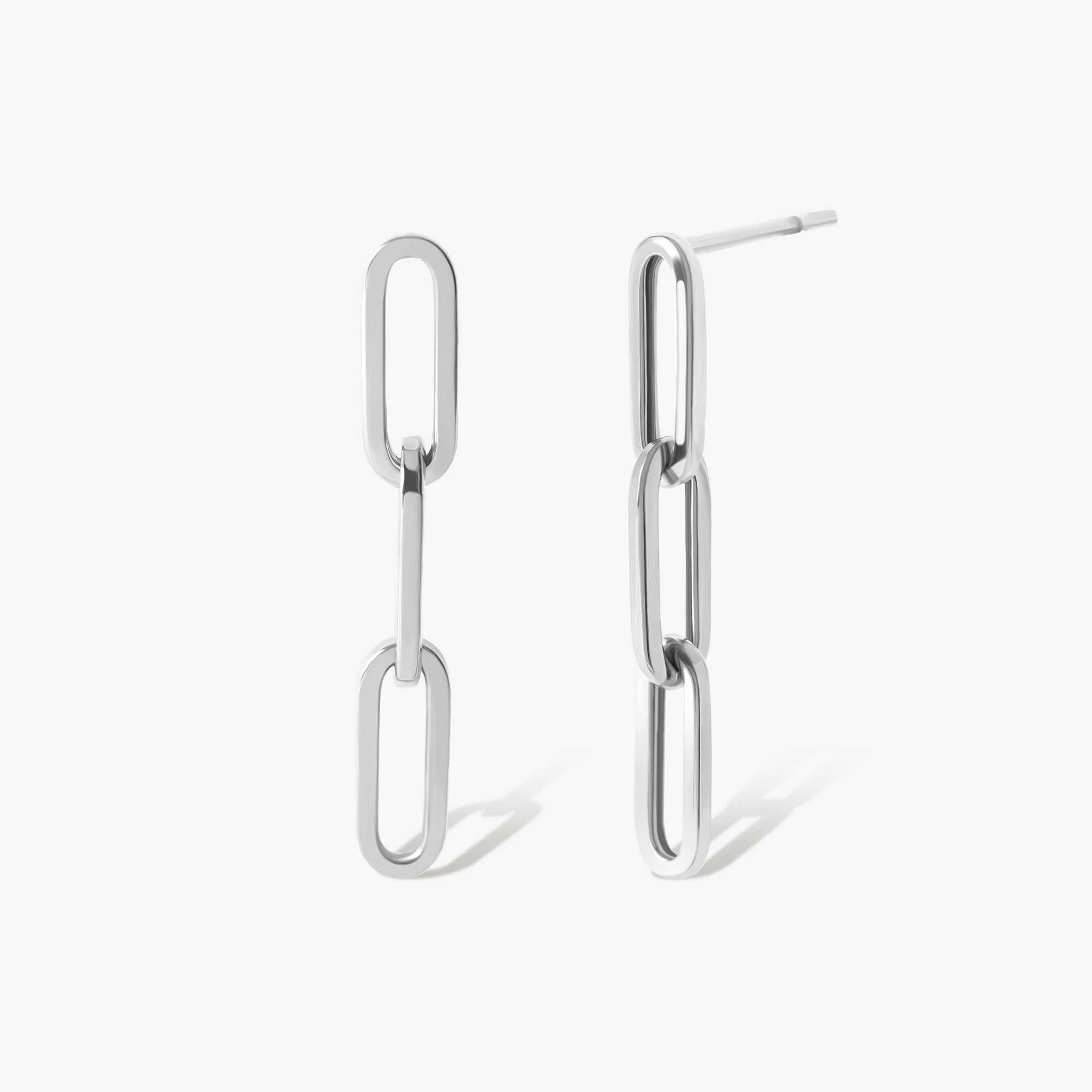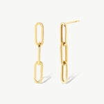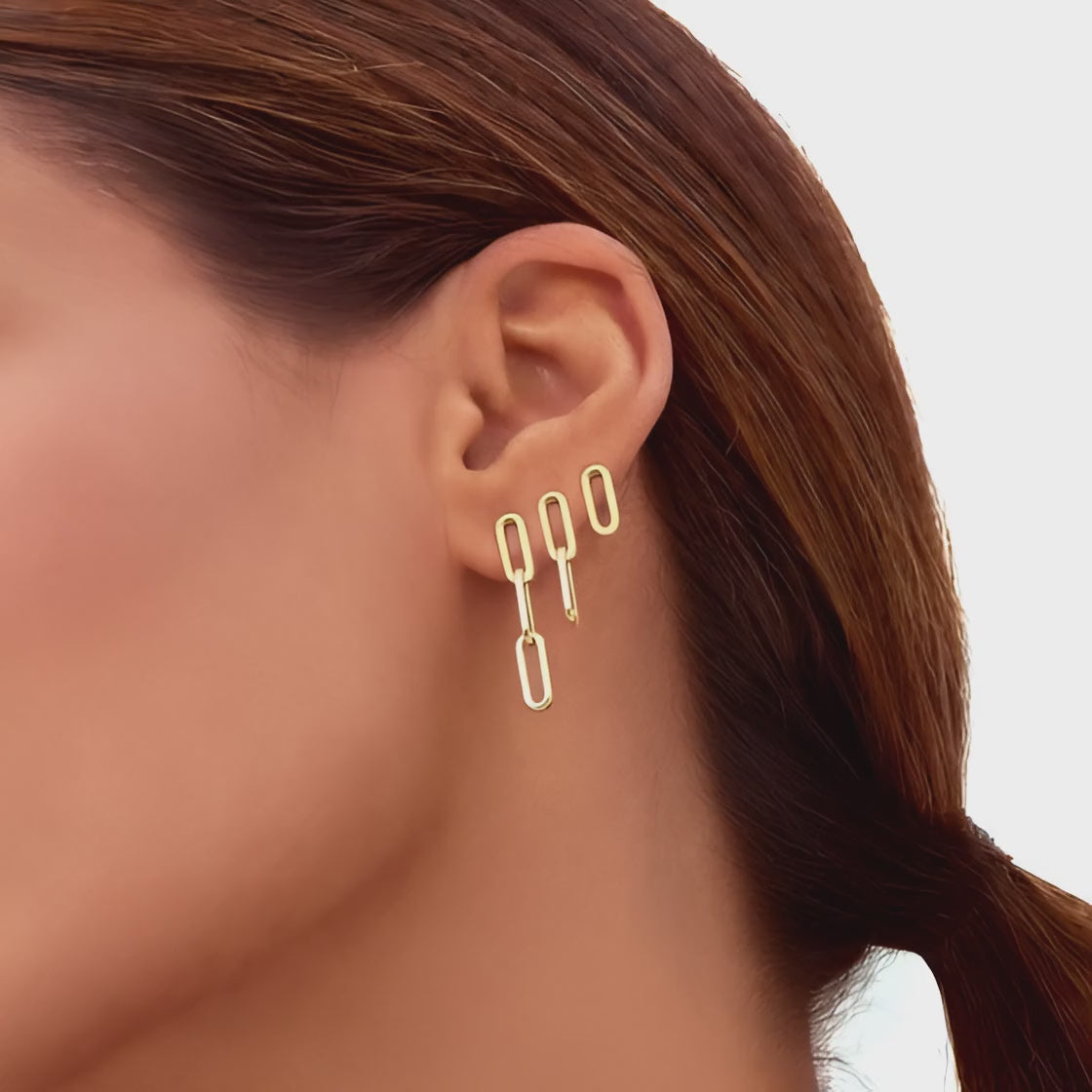 Experience the modern elegance of our 14K Real Solid Gold Dangle Paperclip Chain  Stud Earrings. Perfectly blending contemporary style with classic appeal, these earrings feature a sleek stud connected to a delicate double chain, creating a sophisticated dangle effect. The unique chainlink design allows for a subtle movement that catches the light, enhancing your every gesture.
