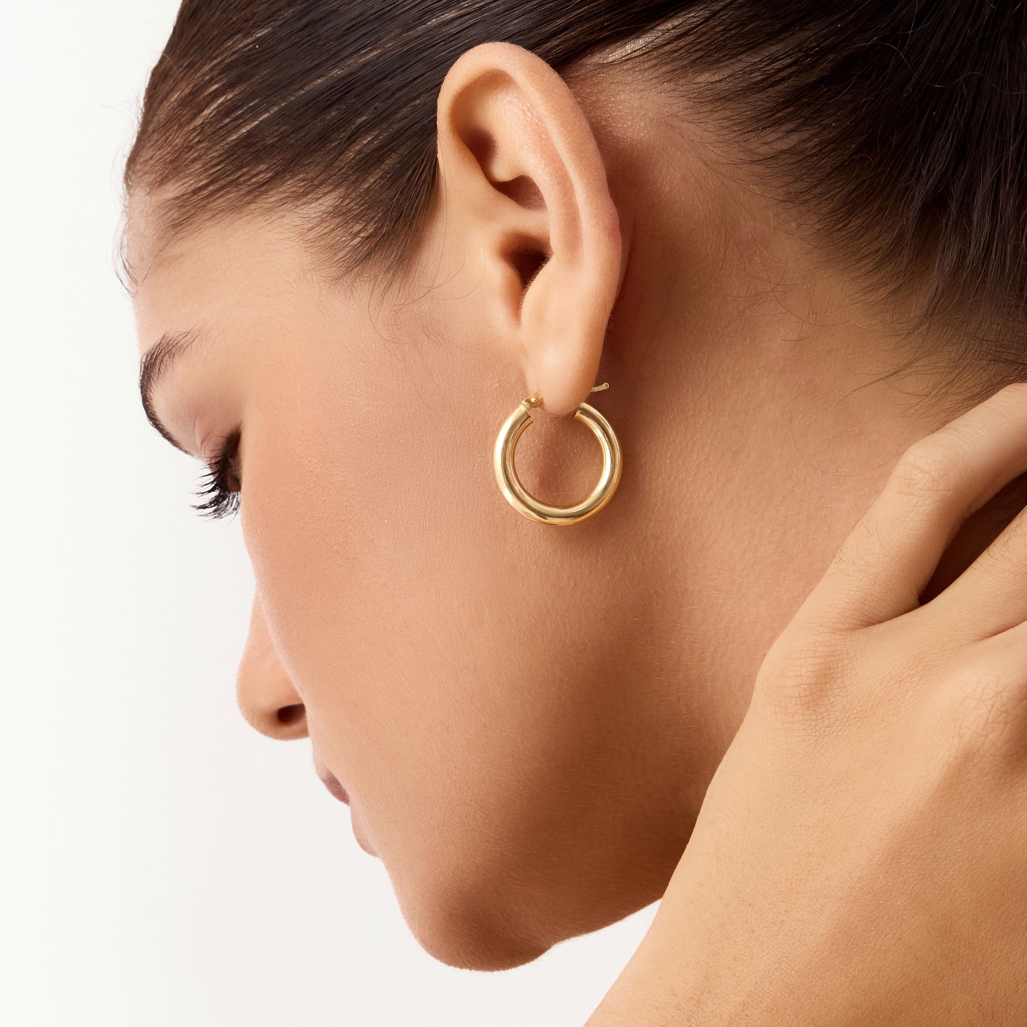14K Solid Gold Plain Hoop Earrings