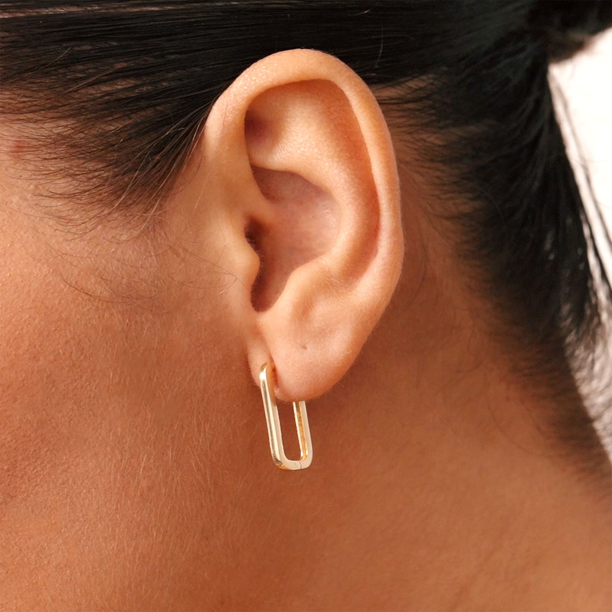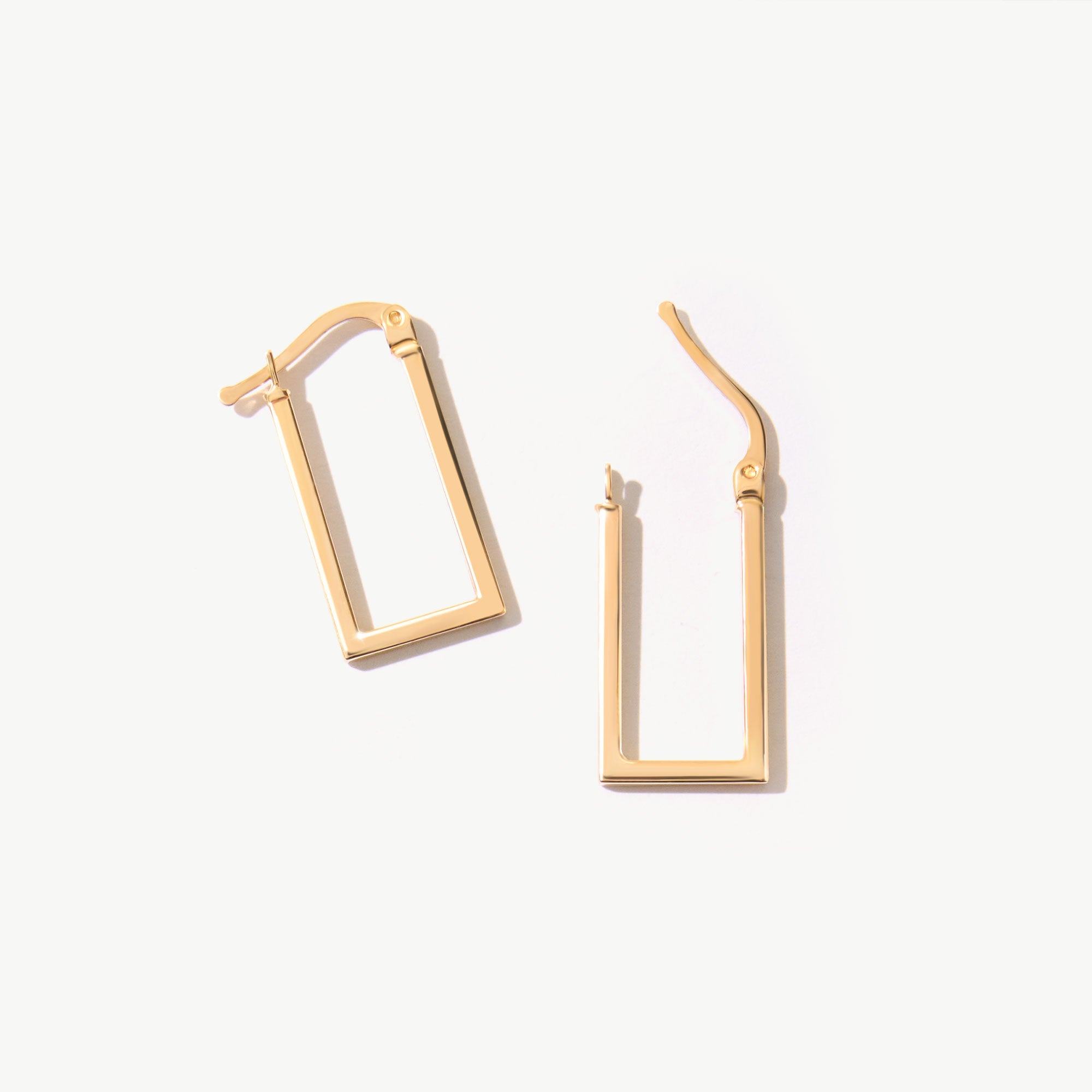 14K Solid Gold Rectangular Hoop Earrings