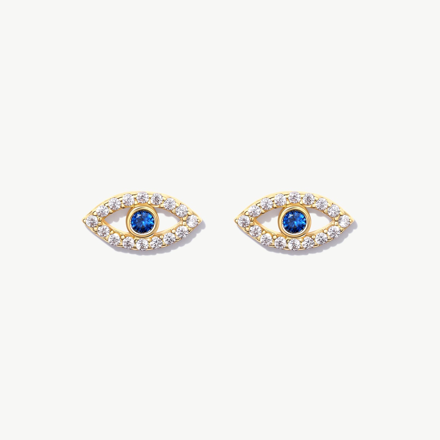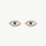 14K Solid Gold Evil Eye Studs - Protective Earrings