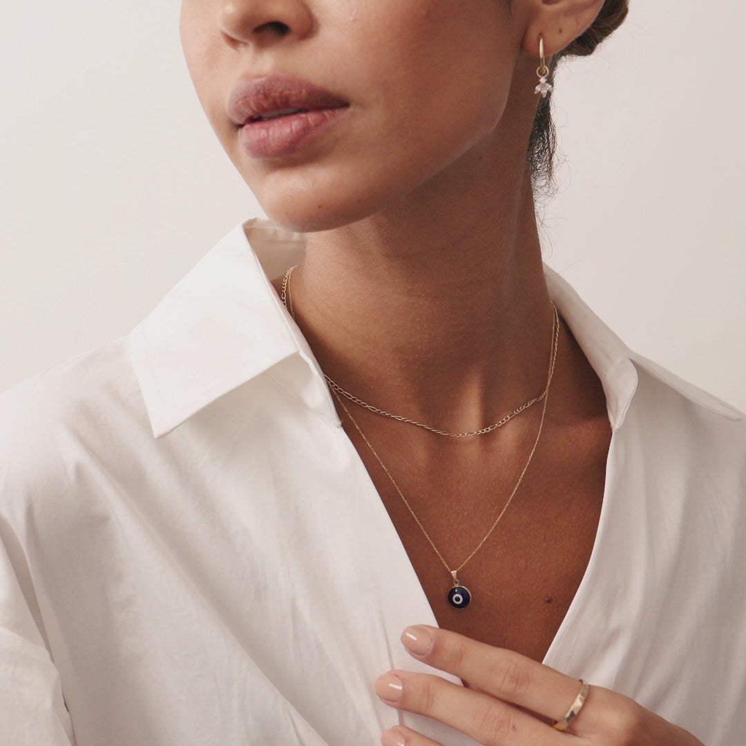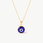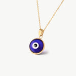 Navy Blue Evil Eye Necklace 14K Solid Gold