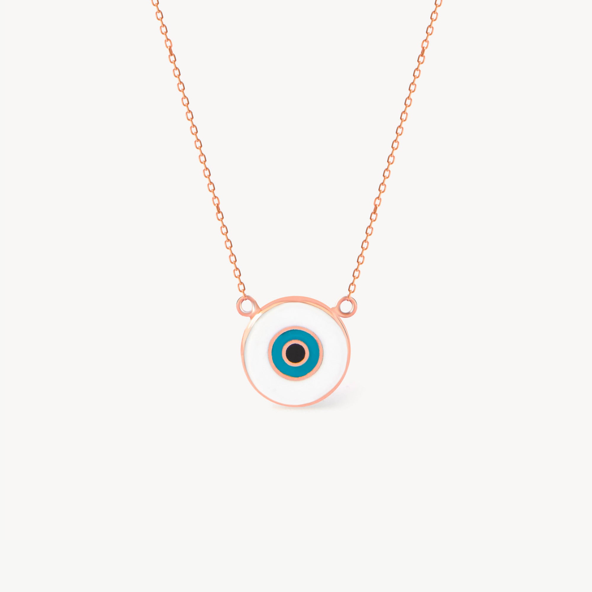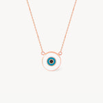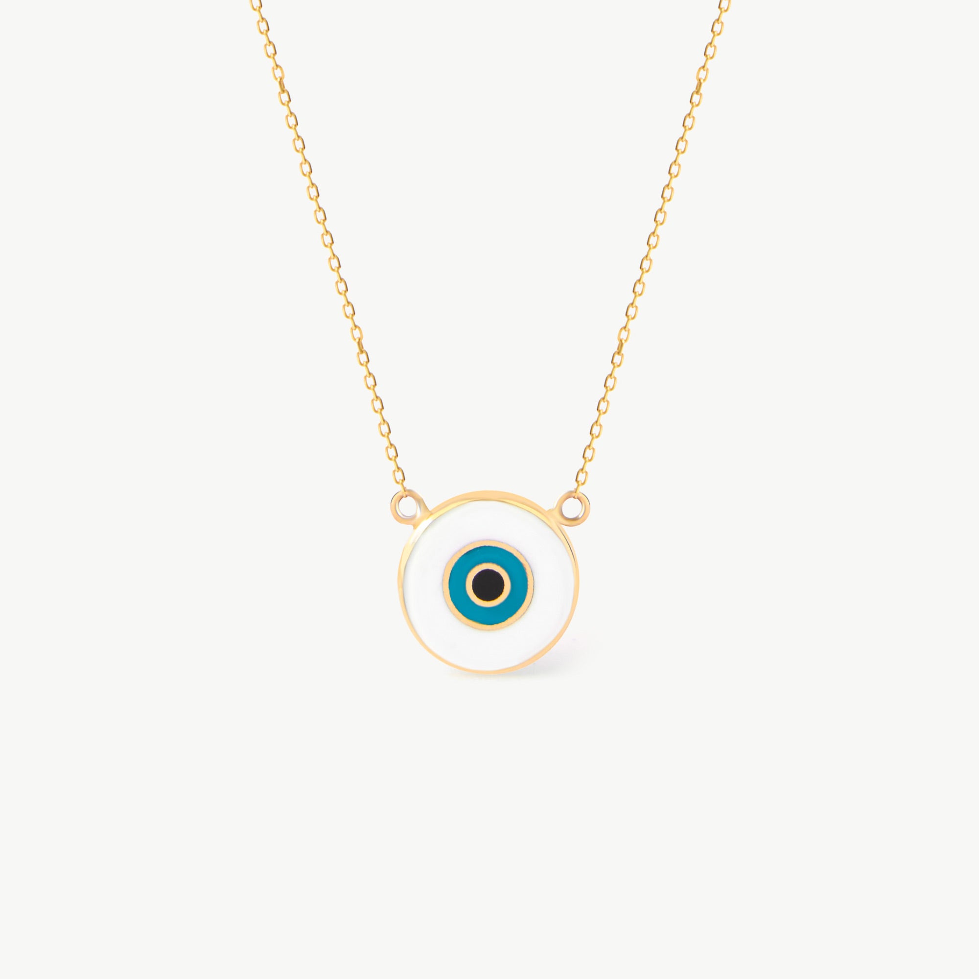 Discover the perfect blend of elegance and symbolism with this 14K Real Solid Gold White and Blue Evil Eye Necklace. The sleek, minimalist design of this dainty necklace allows the powerful symbolism of the evil eye to take center stage. The navy blue and white eye, framed by radiant 14K solid gold, offers a modern twist on a timeless talisman.