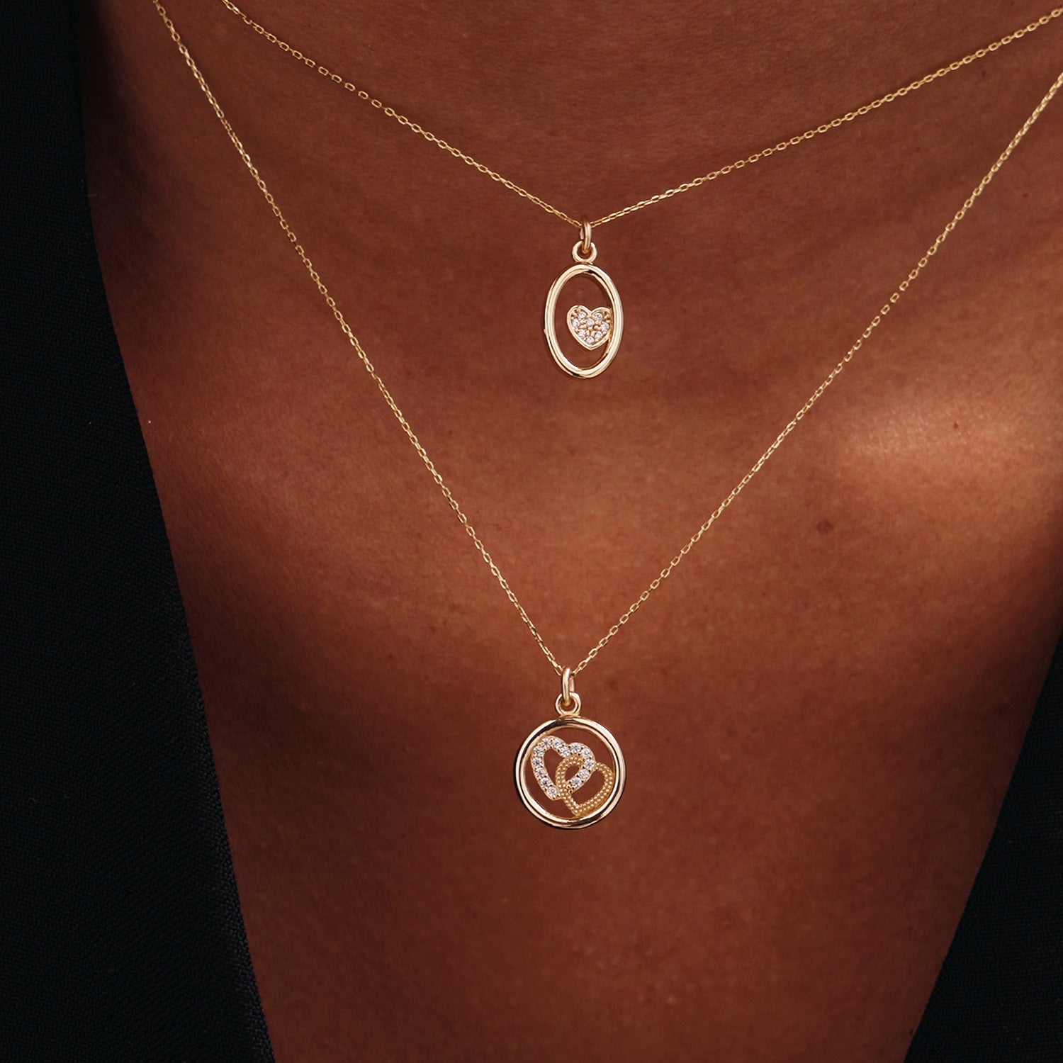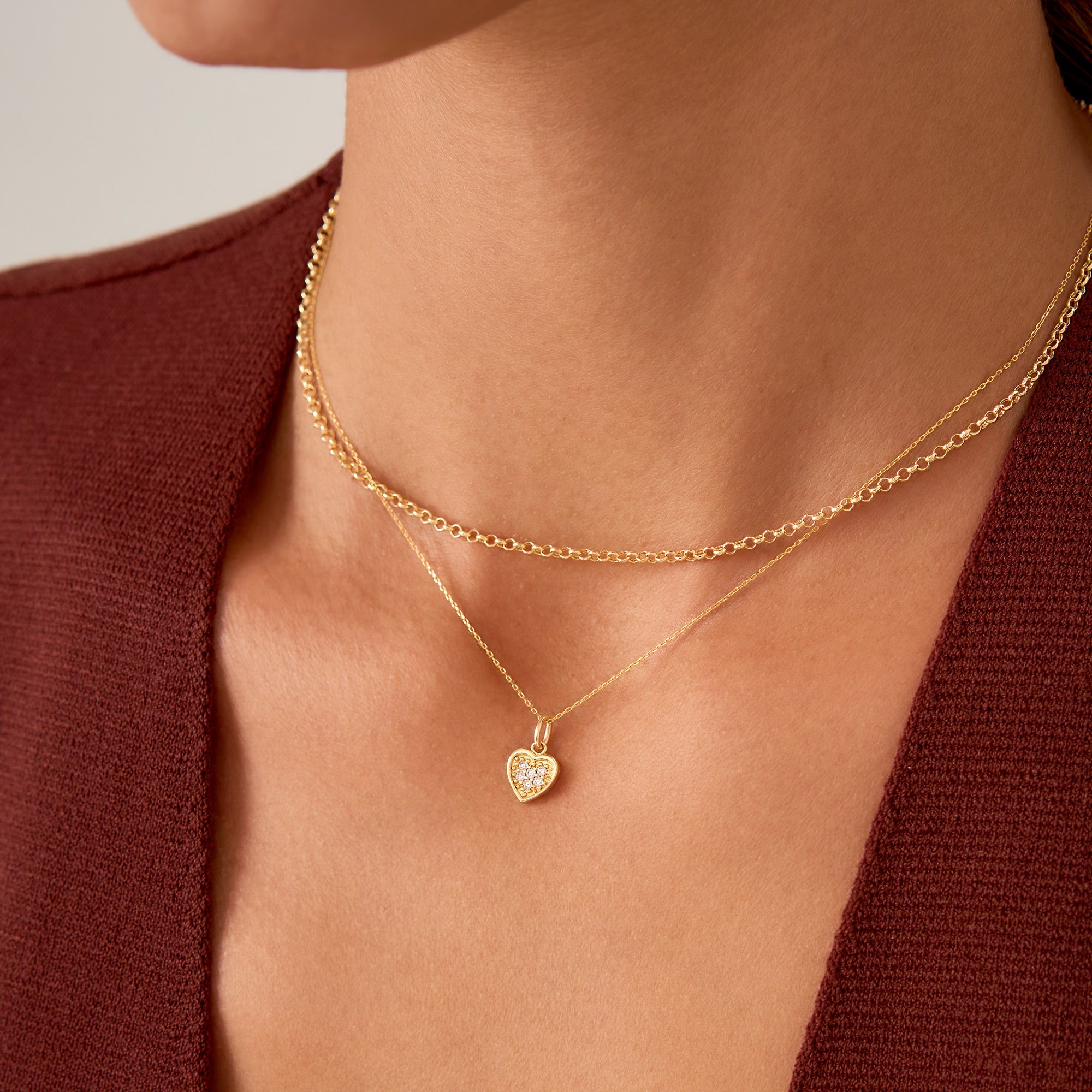 14K Solid Gold Diamond Heart Necklace, Love Pendant