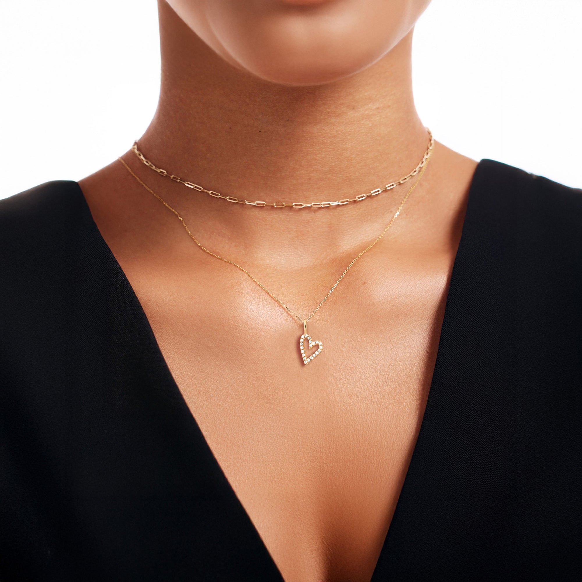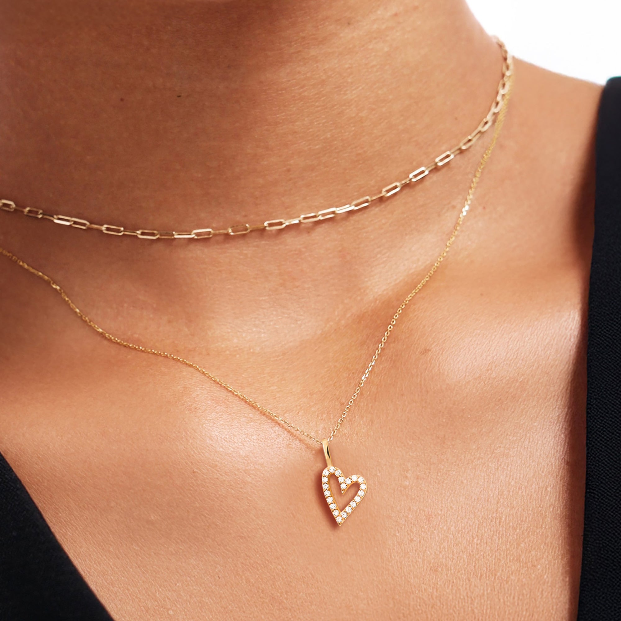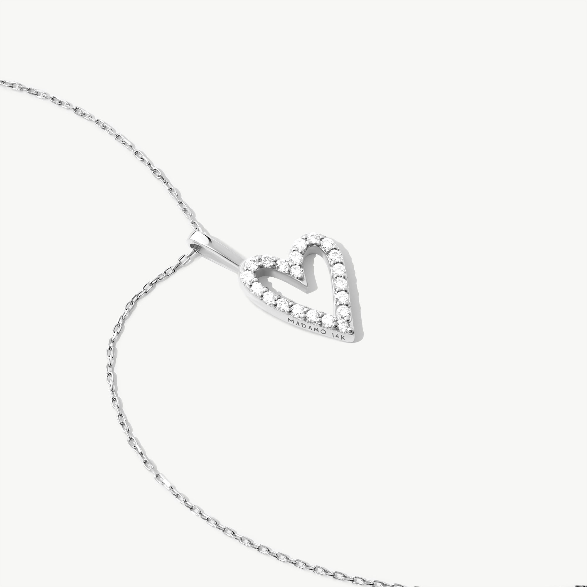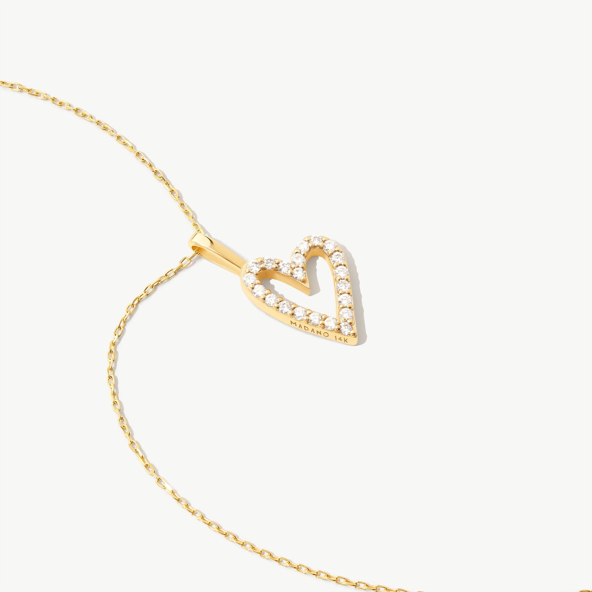 This 14K solid gold diamond heart pendant is a refined expression of love, designed to feel timeless yet modern. Featuring an open heart silhouette outlined with pavé-set natural diamonds, the design captures emotion through light, balance, and simplicity.