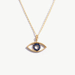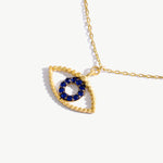 14K Real Solid Gold Evil Eye Necklace featuring a blue sapphire gemstone, a protective charm pendant for women offering elegance and spiritual significance.