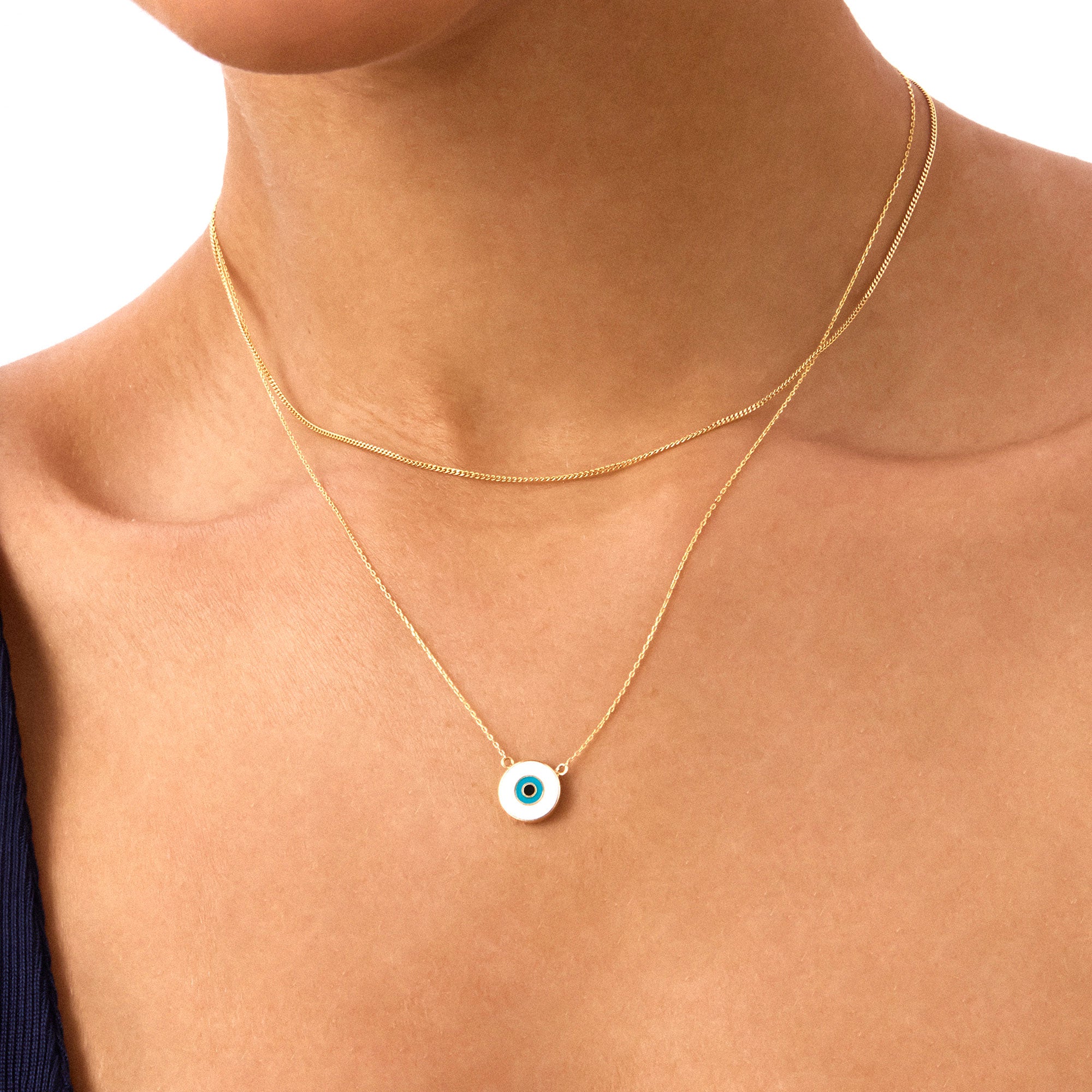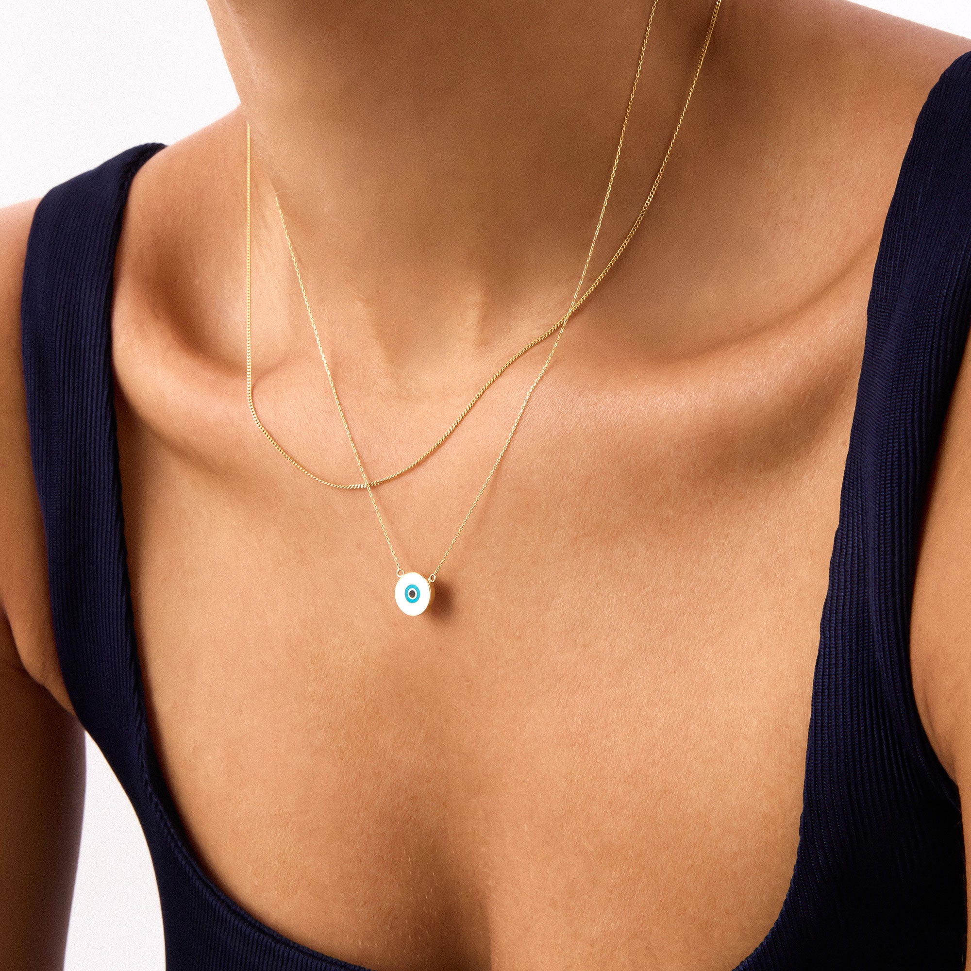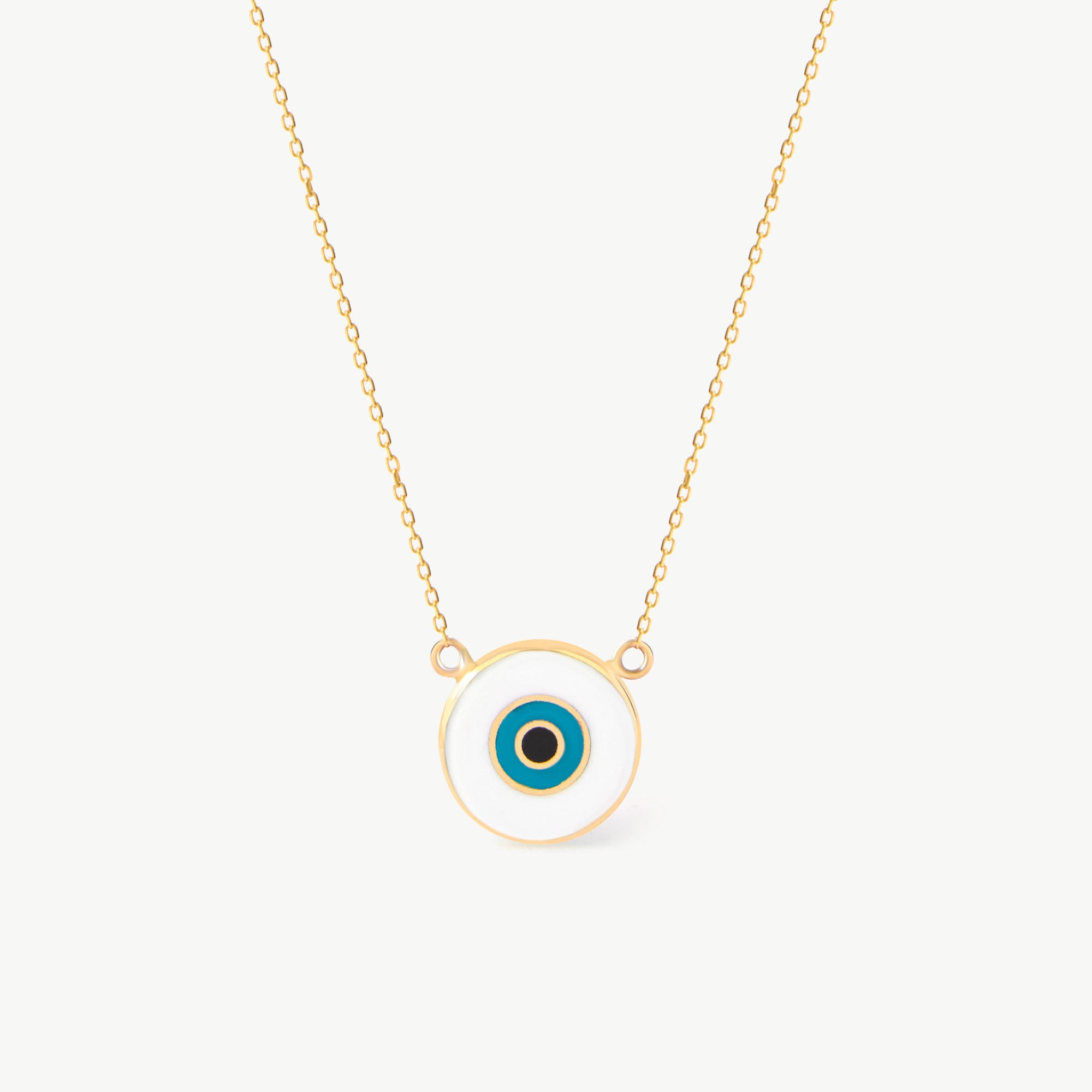 White and Blue Evil Eye Necklace 14K Solid Gold