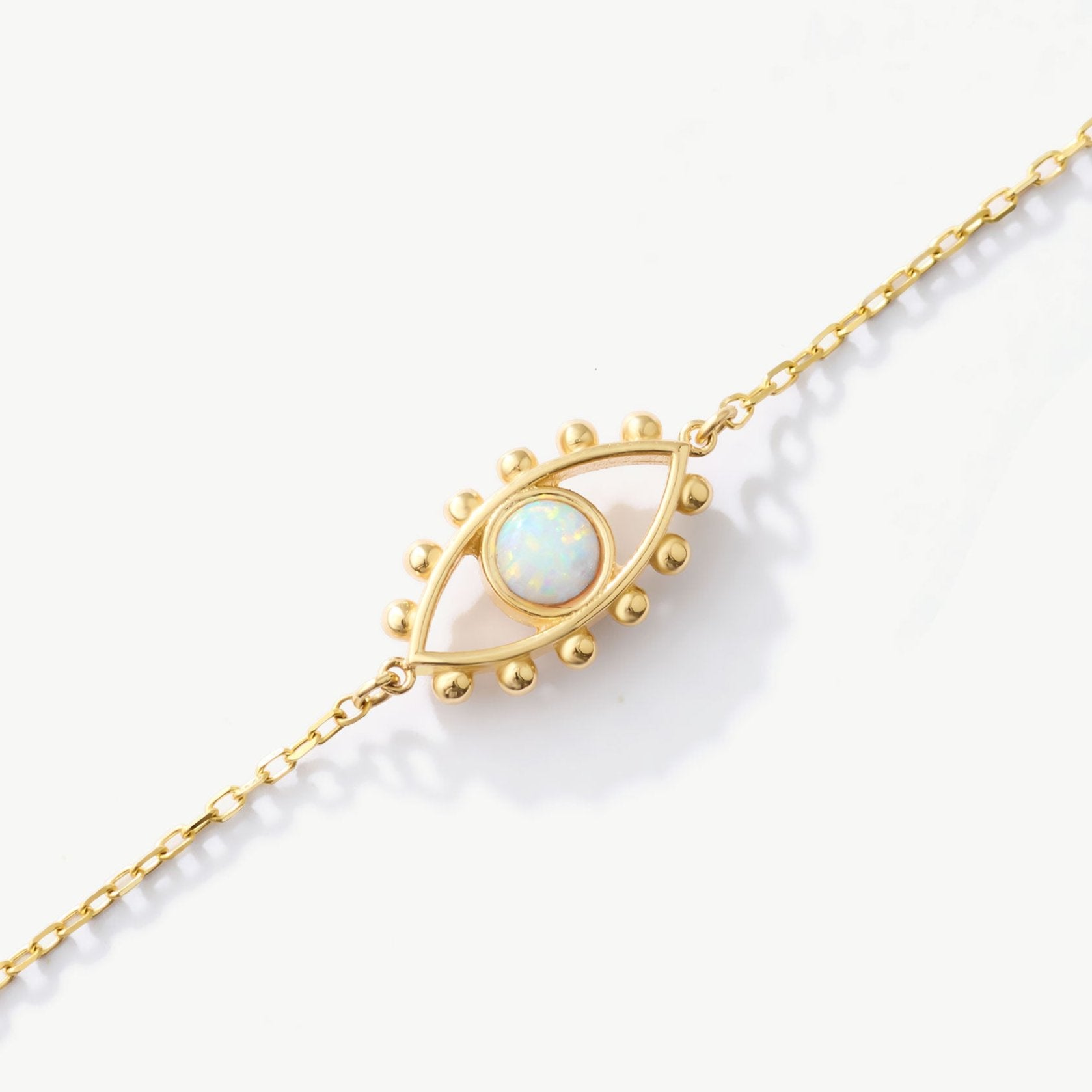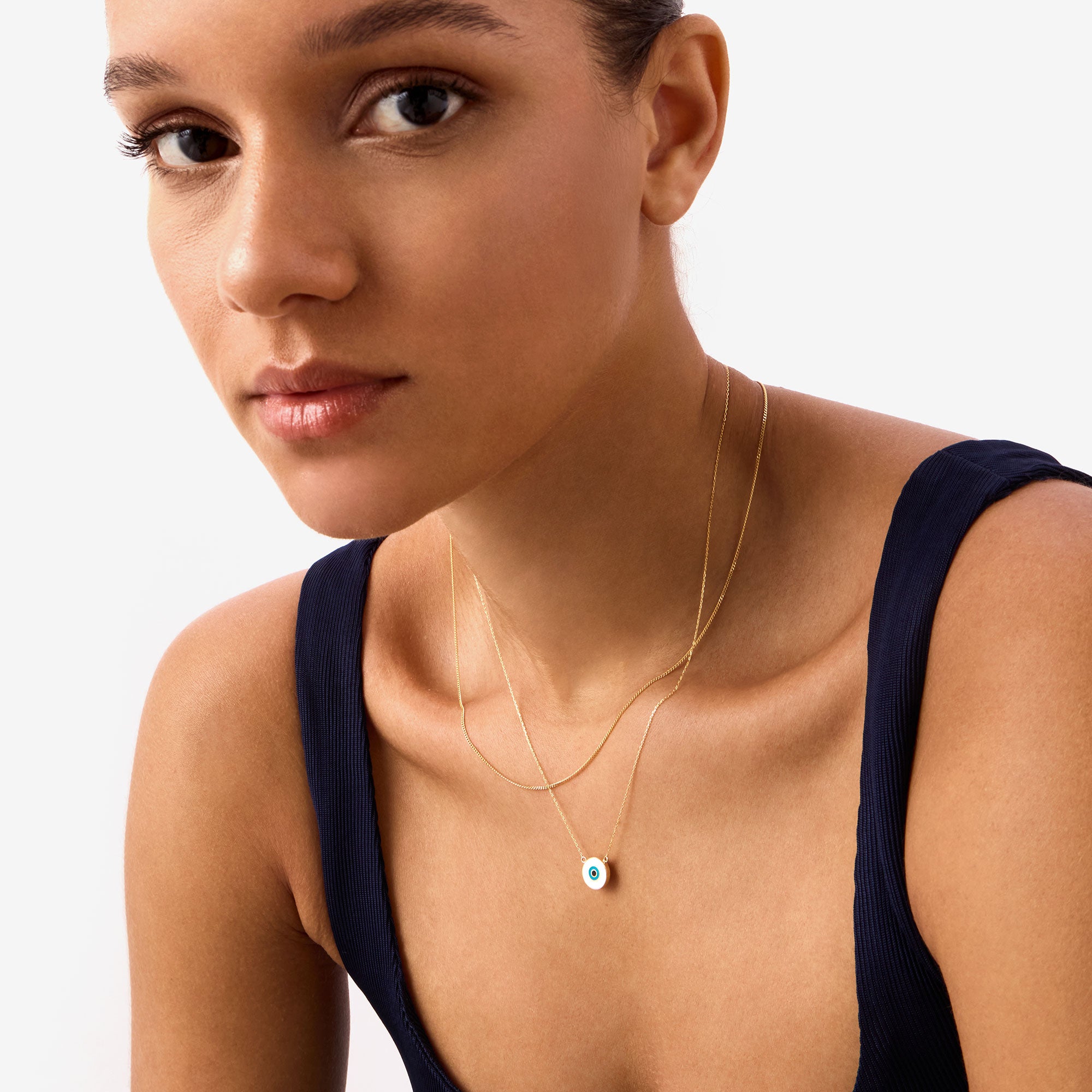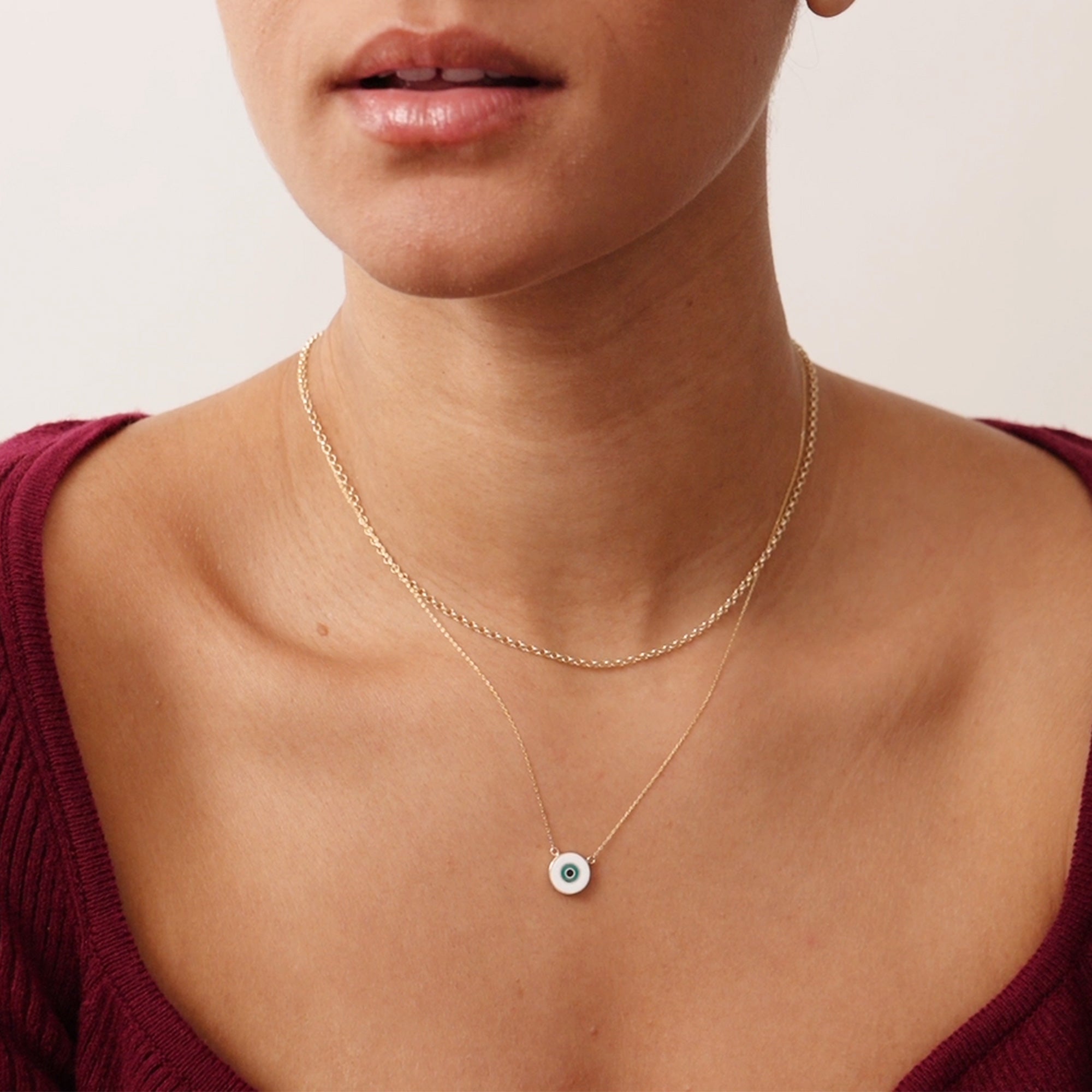 White and Blue Evil Eye Necklace 14K Solid Gold