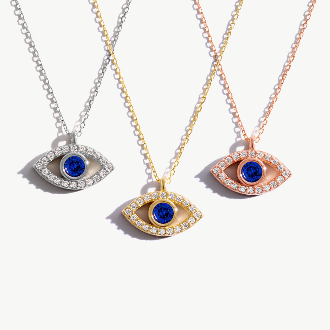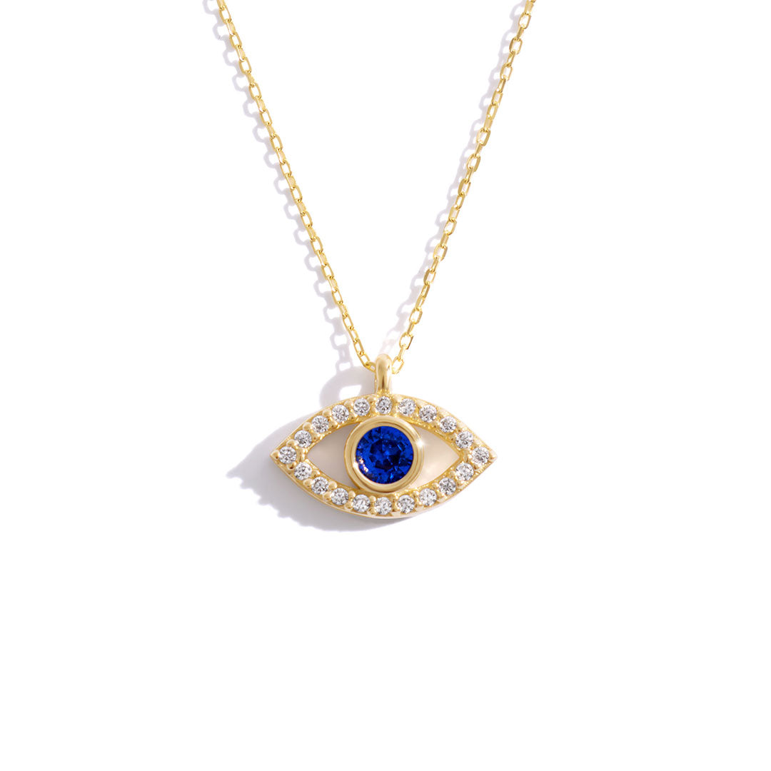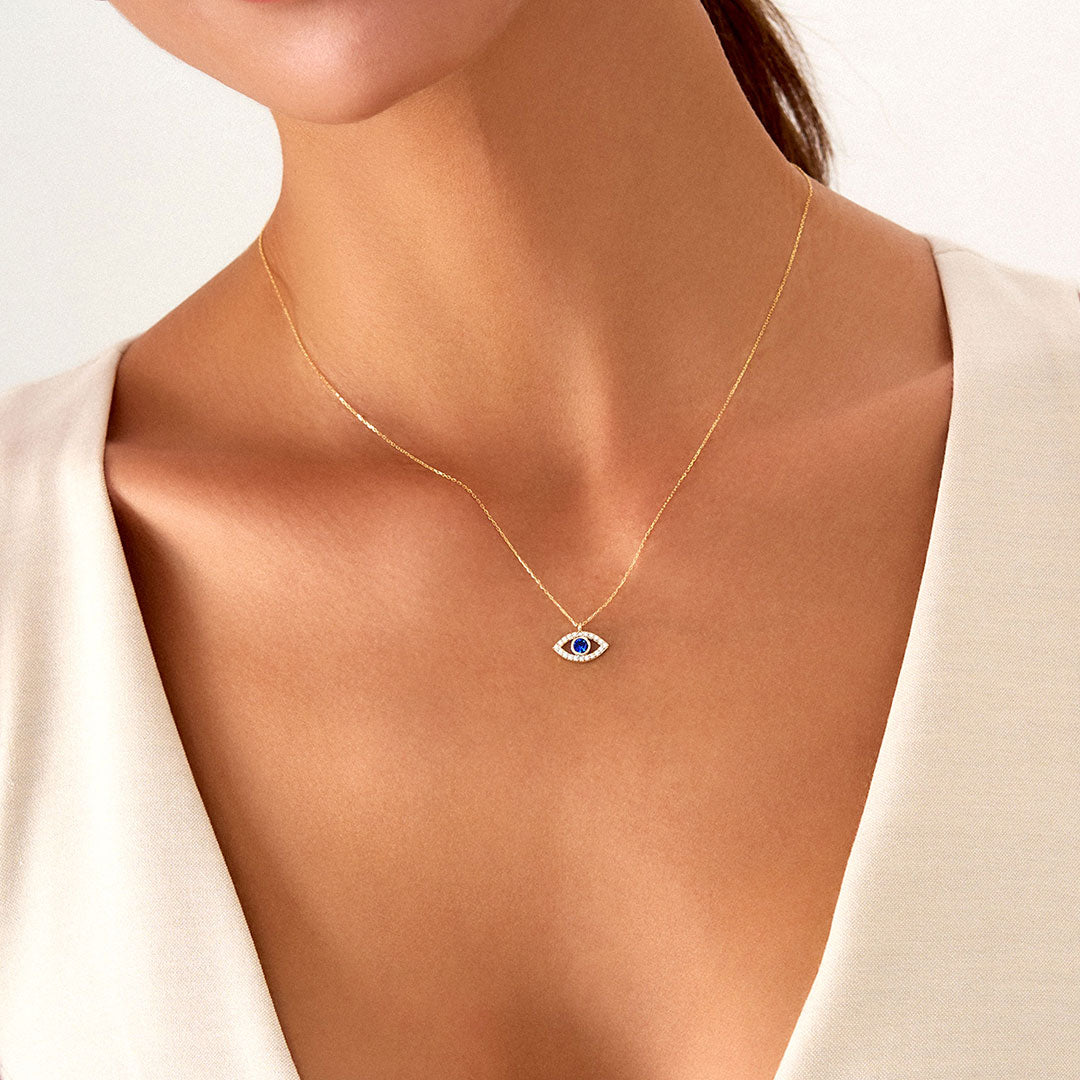 Evil Eye Necklace with Sapphire and Cubic Zirconia