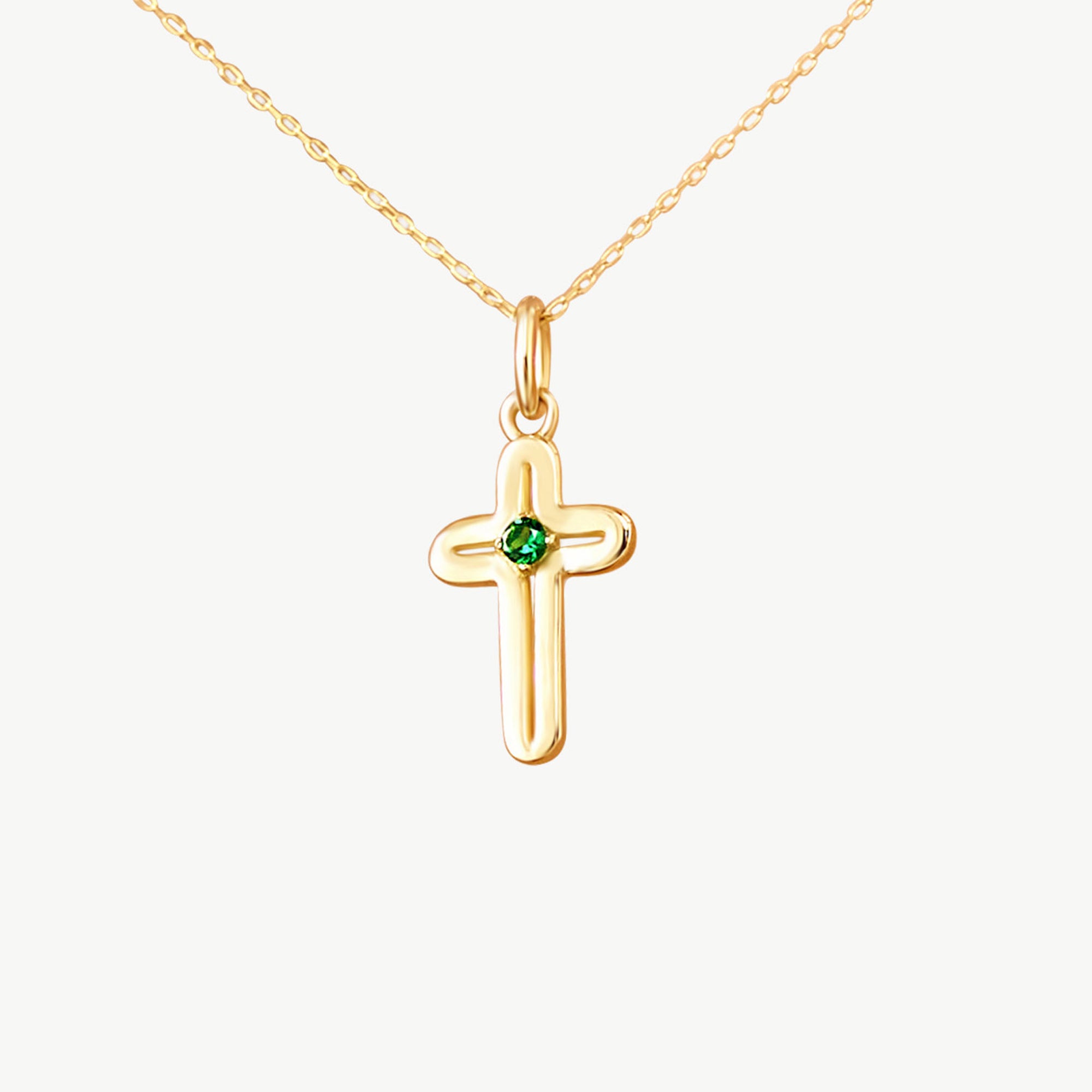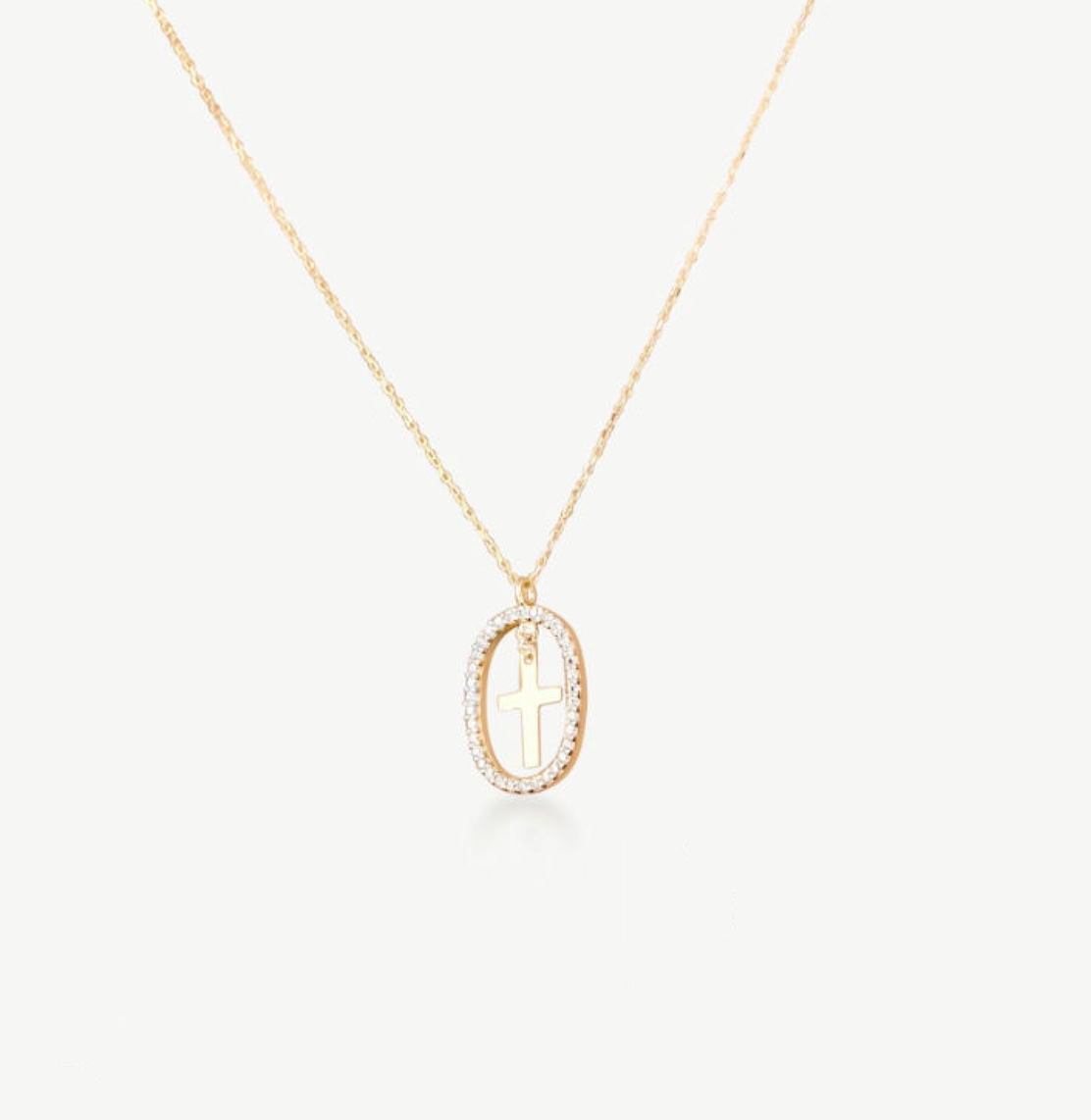 14K Solid Gold Unisex Cross Necklace with Diamond