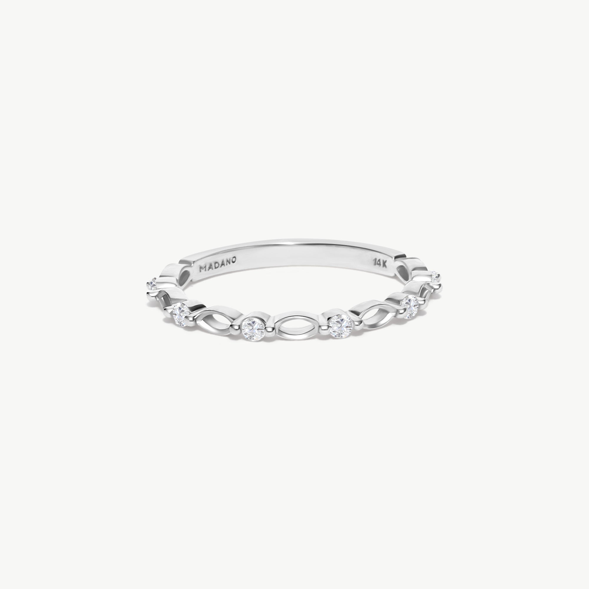 This 14K solid gold lab diamond chain link ring combines the symbolism of infinity with the modern elegance of interlocking links. Designed with delicate proportions and six round lab diamonds, the ring represents connection, balance, and lasting bonds.