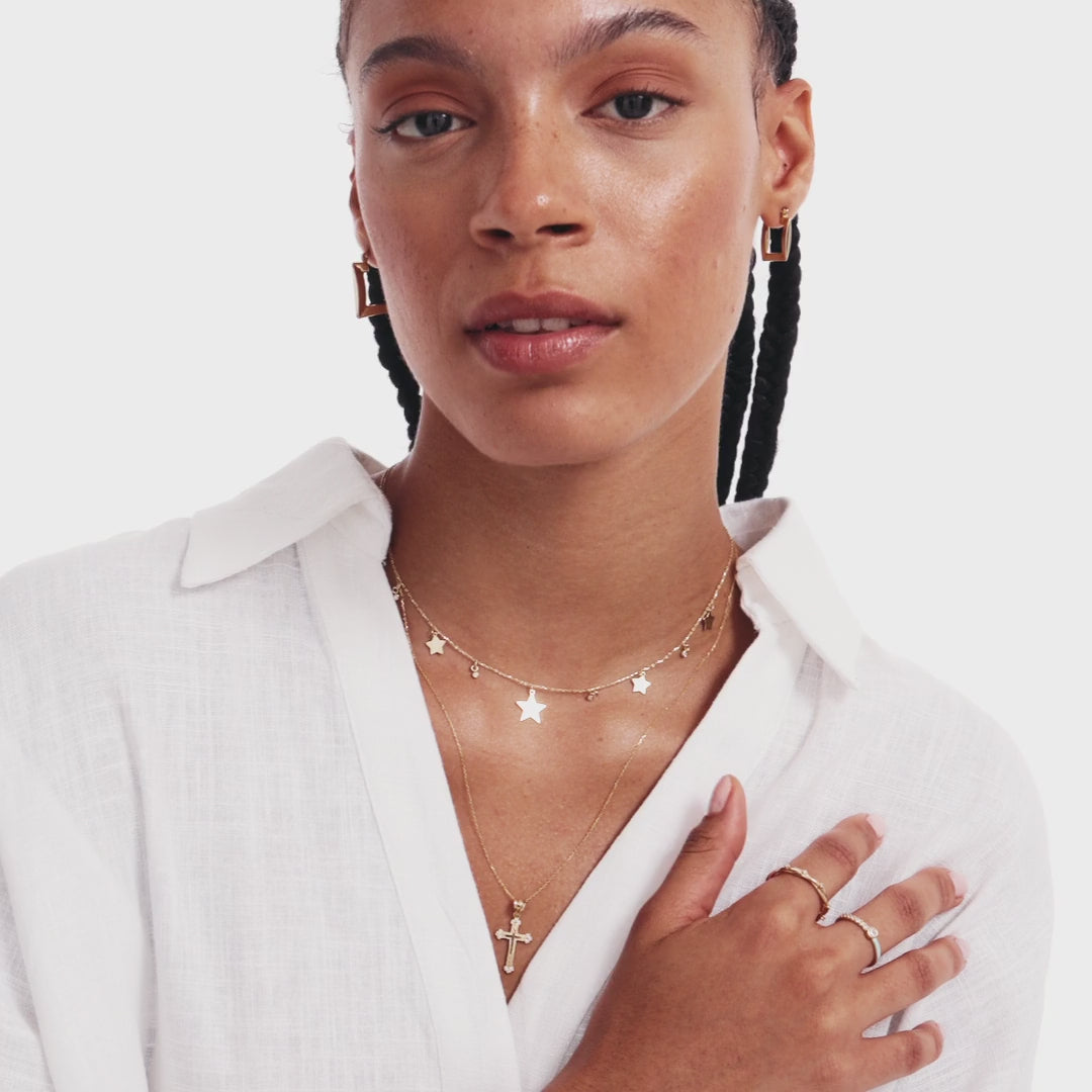 The 14K Real Solid Gold Catholic Cross Necklace is a meaningful piece of jewelry crafted to honor your beliefs and your sense of elegance. With shimmering April birthstone cubic zirconia accents placed at each corner of the cross, this pendant captures both spiritual grace and visual beauty.