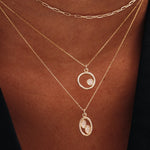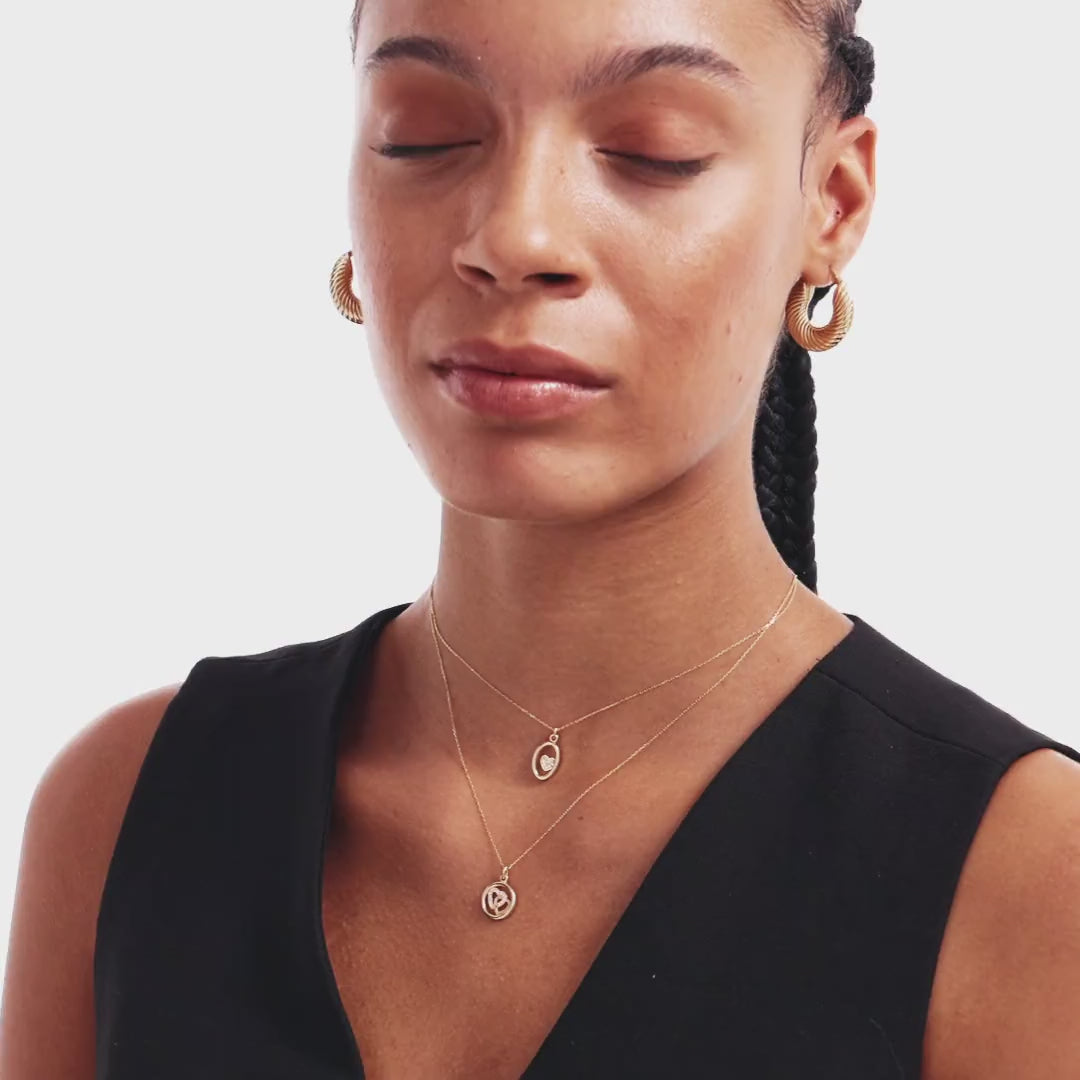 This 14k solid gold interlocking circle necklace is more than just a beautiful accessory—it’s a heartfelt symbol of connection, unity, and everlasting love. Featuring a brilliant April birthstone (Cubic Zirconia) cluster set within a sculptural circle, this dainty pendant tells a story of closeness and belonging.