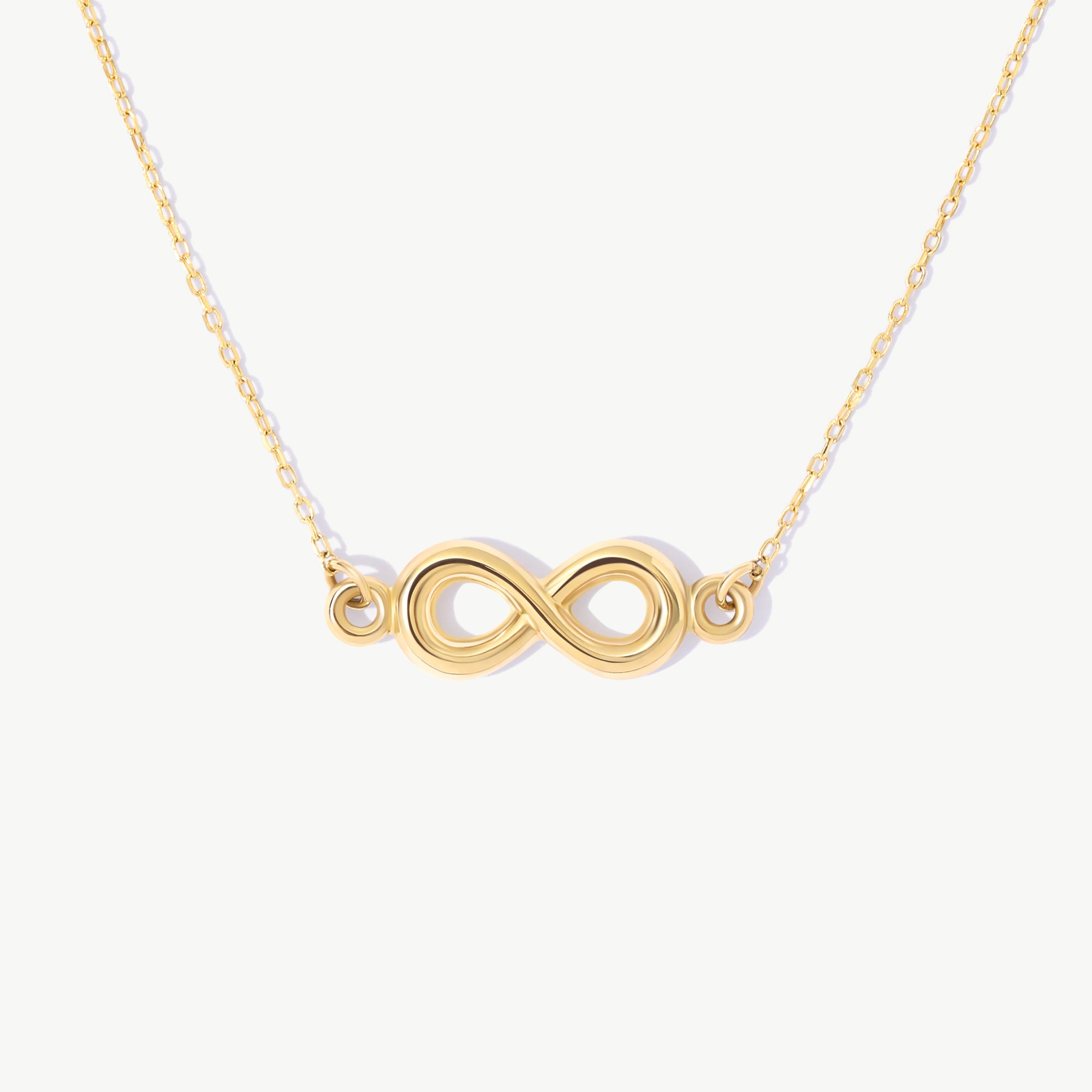 The 14K Real Solid Gold Infinity Necklace is a stunning representation of everlasting love and unbreakable bonds. Featuring a smooth, perfectly sculpted infinity symbol, this piece brings elegance and meaning together in one timeless design.
