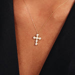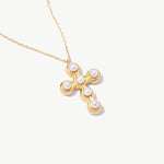 14K Solid Gold Pearl Cross Necklace: Dainty Christian Pendant