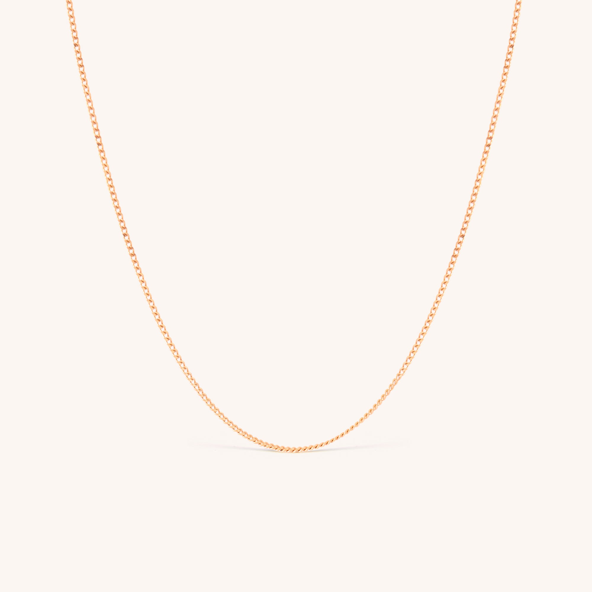 14K solid yellow gold dainty curb chain necklace with a minimalist design, featuring delicate Cuban links. Perfect for layering or wearing solo, this timeless gold chain adds elegance to any look, ideal for daily wear or special occasions.