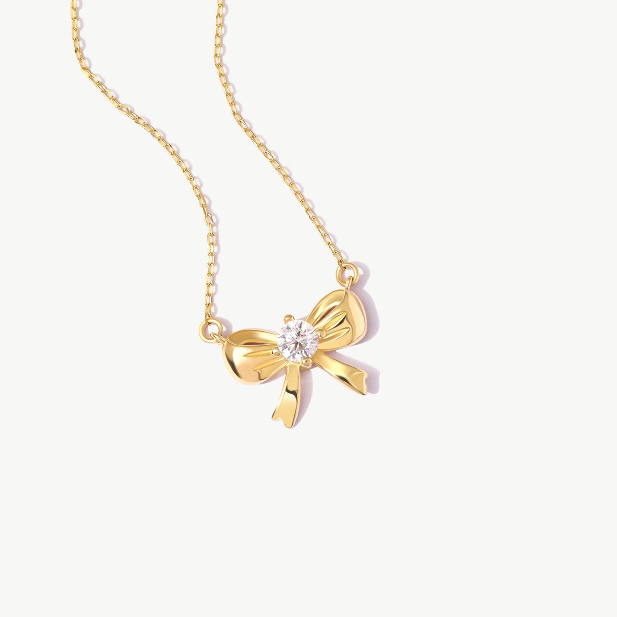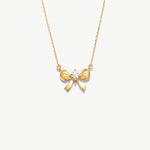 14K Solid Gold Bow Necklace: Dainty Ribbon Pendant
