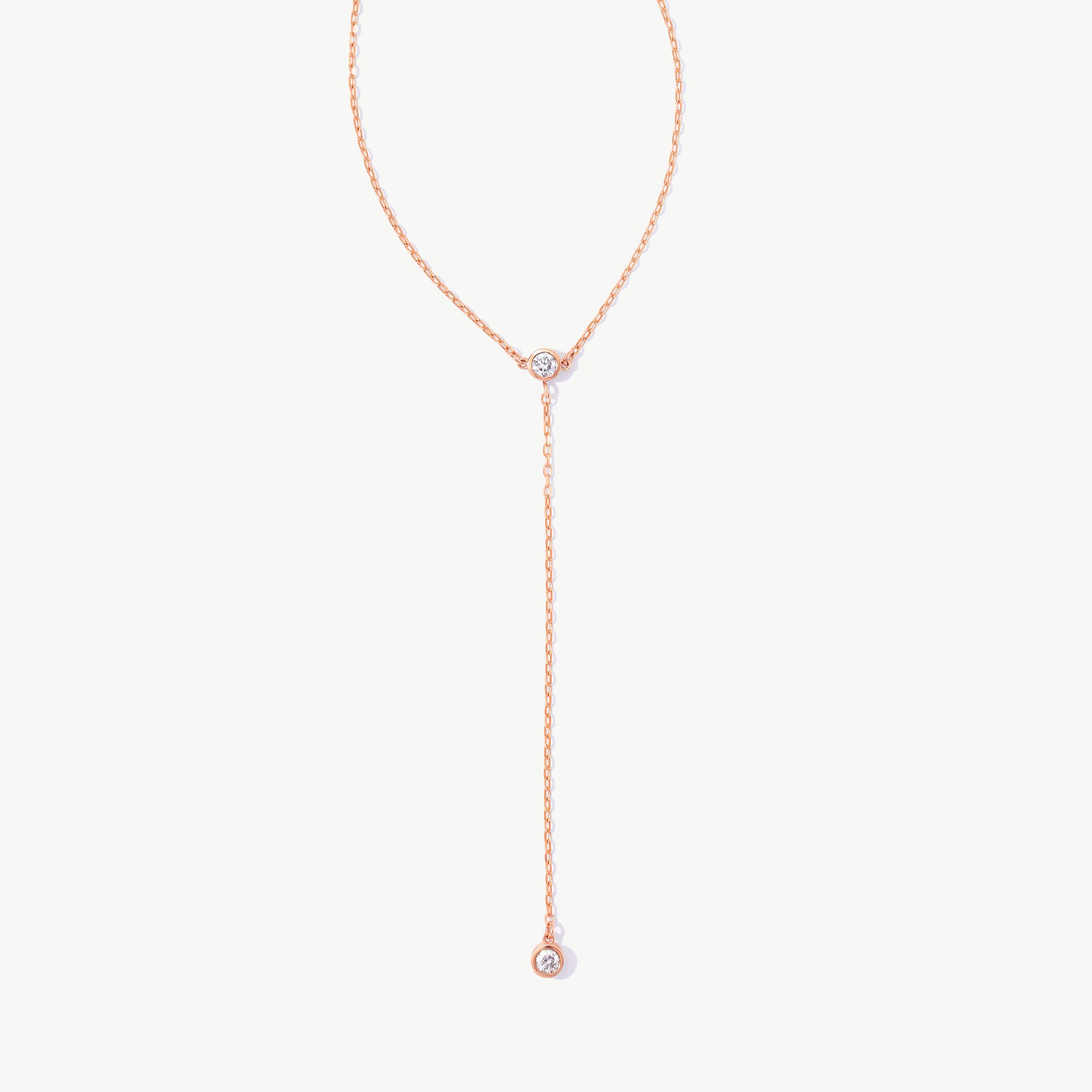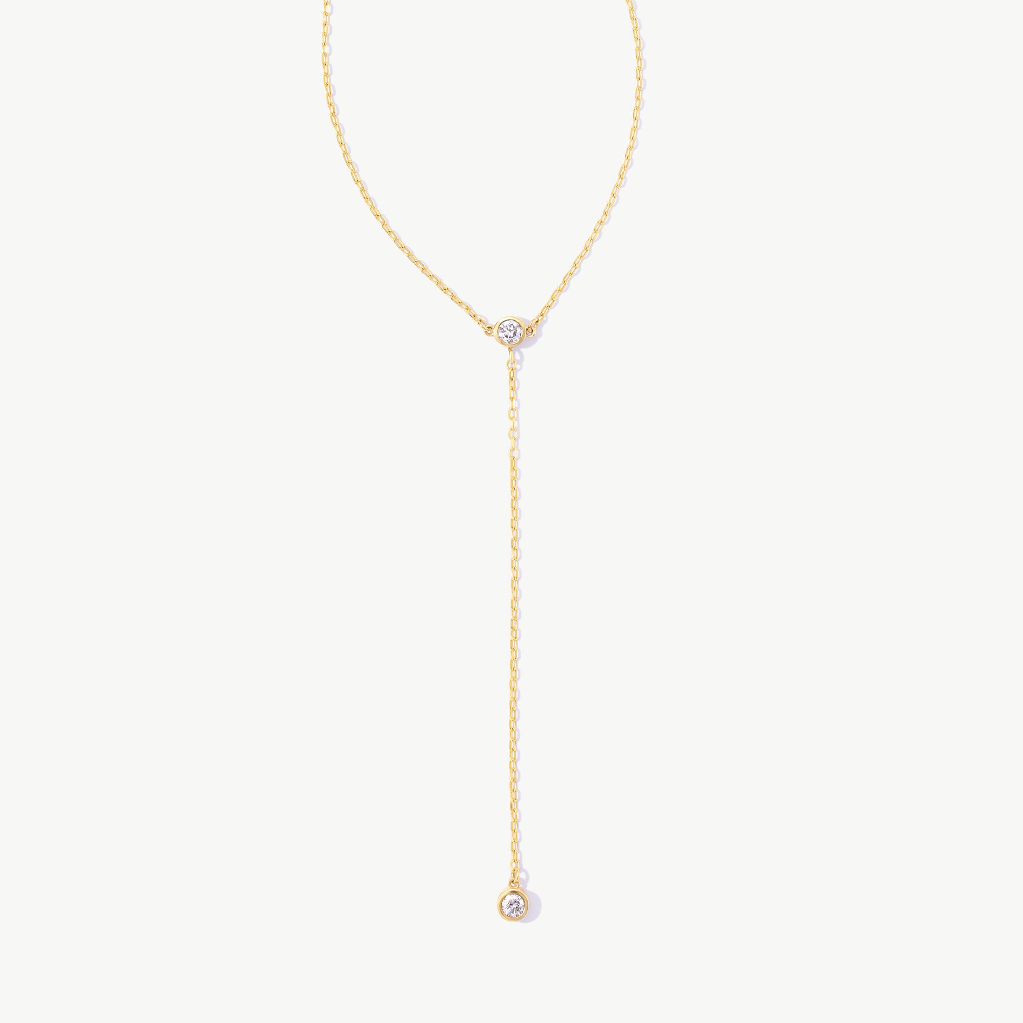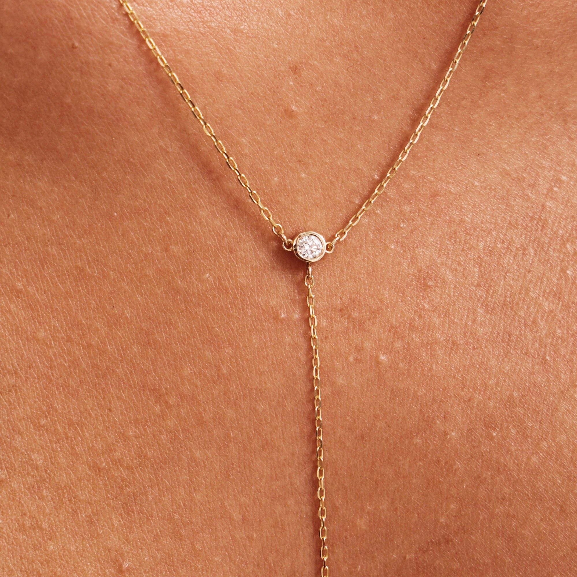 14K Solid Gold Diamond Lariat Necklace – Delicate Y Drop