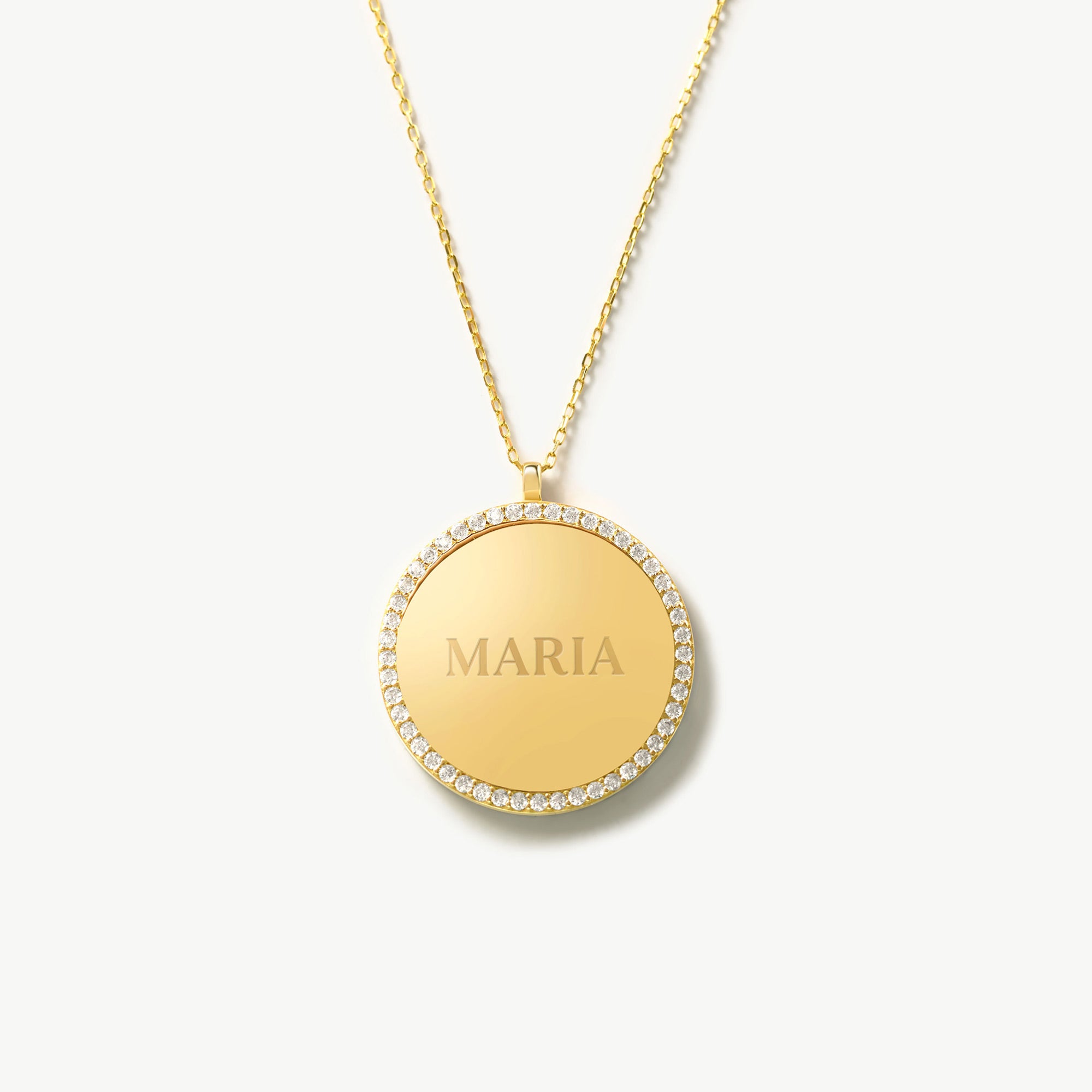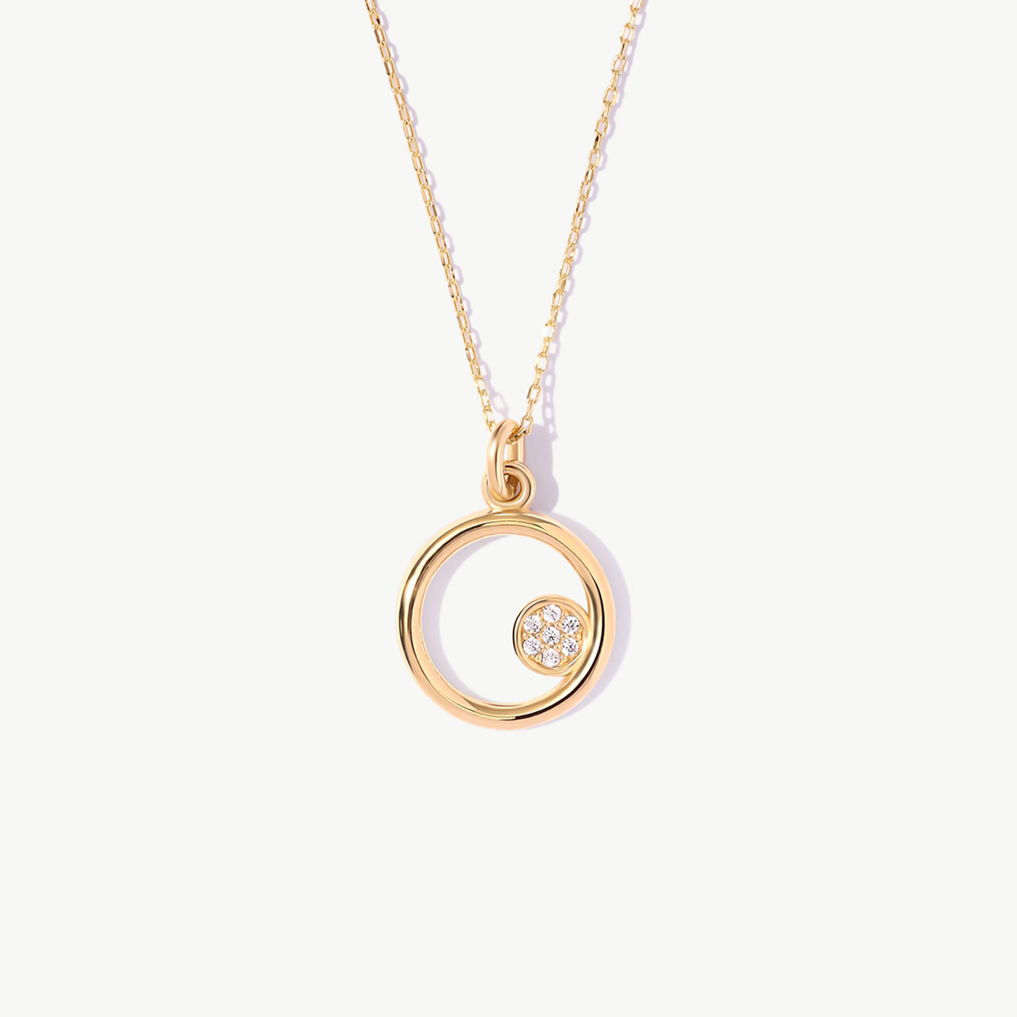 14k Solid Gold Circle Necklace: Dainty Interlocking Pendant